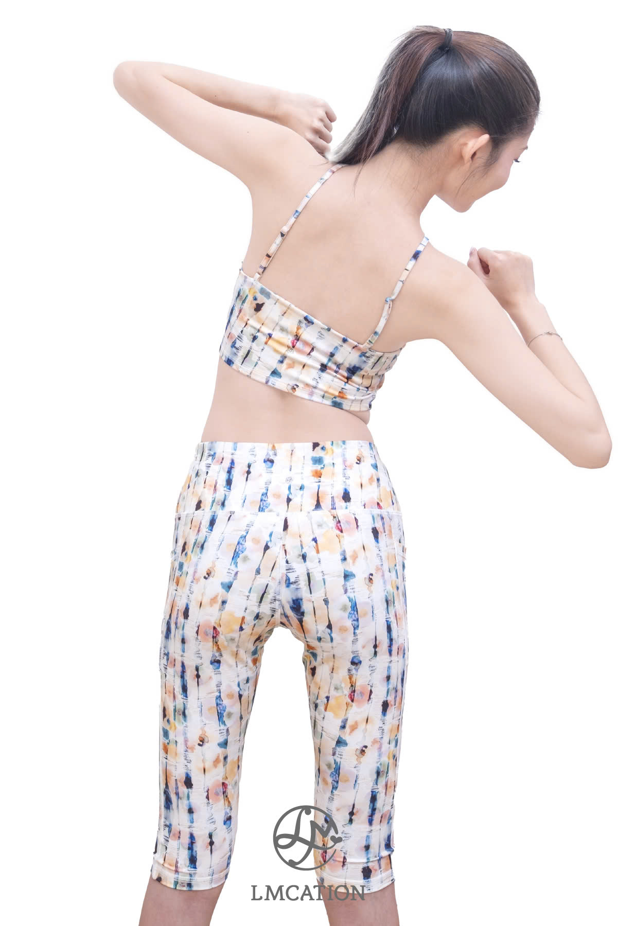 ✨Bộ đồ thể thao LMcation - Áo ngực thể thao cổ yếm Sophie & Quần lửng thể thao trên gối túi 2 bên - Sọc đủ màu