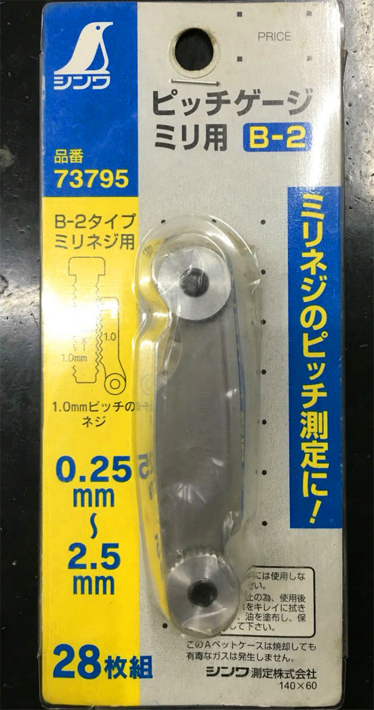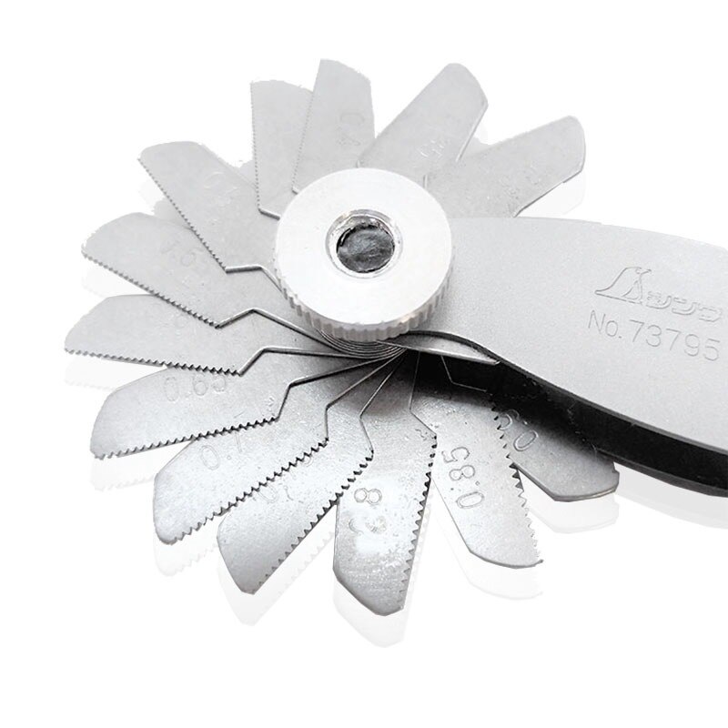- Kích thước đo từng là : 0.25, 0.3, 0.35, 0.4, 0.45, 0.5, 0.55, 0.6, 0.65, 0.7, 0.75, 0.8, 0.85, 0.9, 1.0, 1.1, 1.2, 1.25, 1.3, 1.4, 1.5, 1.6, 1.7, 1.75, 1.8, 1.9, 2.0, 2.25mm Thông tin dưỡng đo ren 26 lá Hệ Inch shinwa 73794