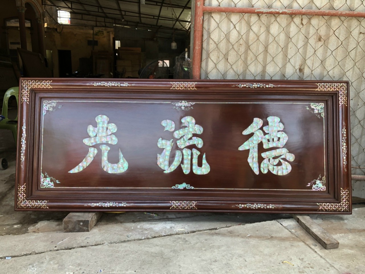 _ Bộ hoành phi câu đối được làm bằng chất liệu gỗ gụ lào ,Kết hợp với khảm ốc singgapore tự nhiên 100% _ Kích thước hoành phi ngang 67cm dài 76cm dầy 4cm _