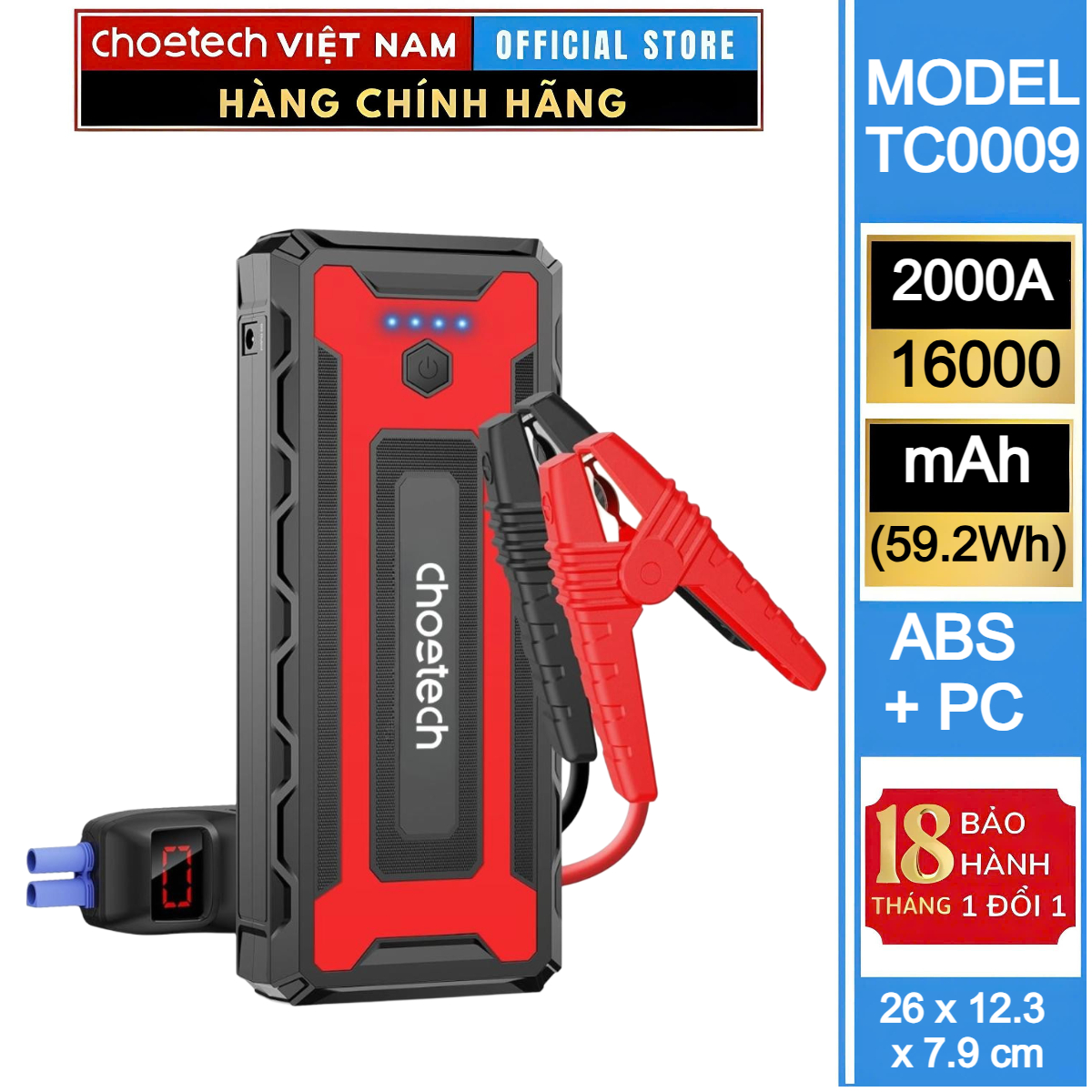 Giới thiệuBộ kích nguồn ô tô Choetech TC0009 2000A sạc pin cầm tay dung lượng 16000mAh tích hợp đèn Led 3 chế độ (Hàng chính hãng) - Thương hiệu: Choetech - Model: Choetech TC0009 - Dung lượng