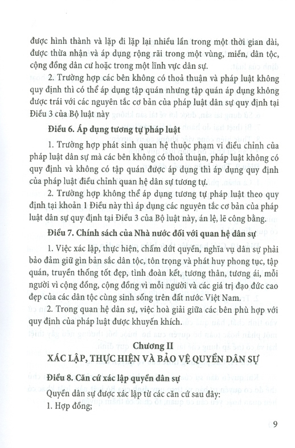 Bộ Luật Dân Sự 2015 - P1. Chương 2. XÁC LẬP, THỰC HIỆN VÀ BẢO VỆ QUYỀN DÂN SỰ (Điều 8-15)