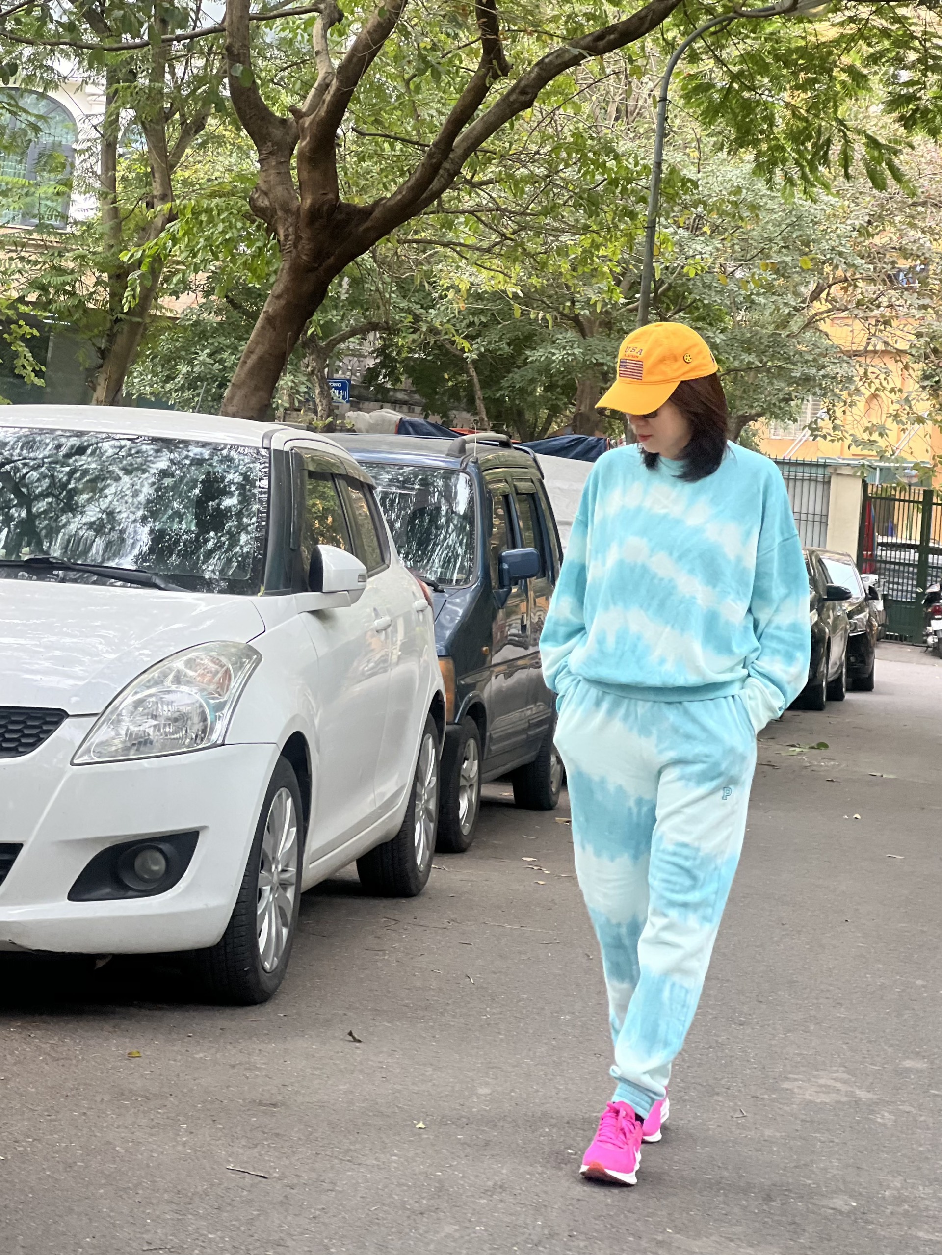 ✨Bộ nỉ Victoria Secret màu xanh loang unisex mềm mịn, thoải mái cho vận động thể thao và phù hợp cả mặc nhà