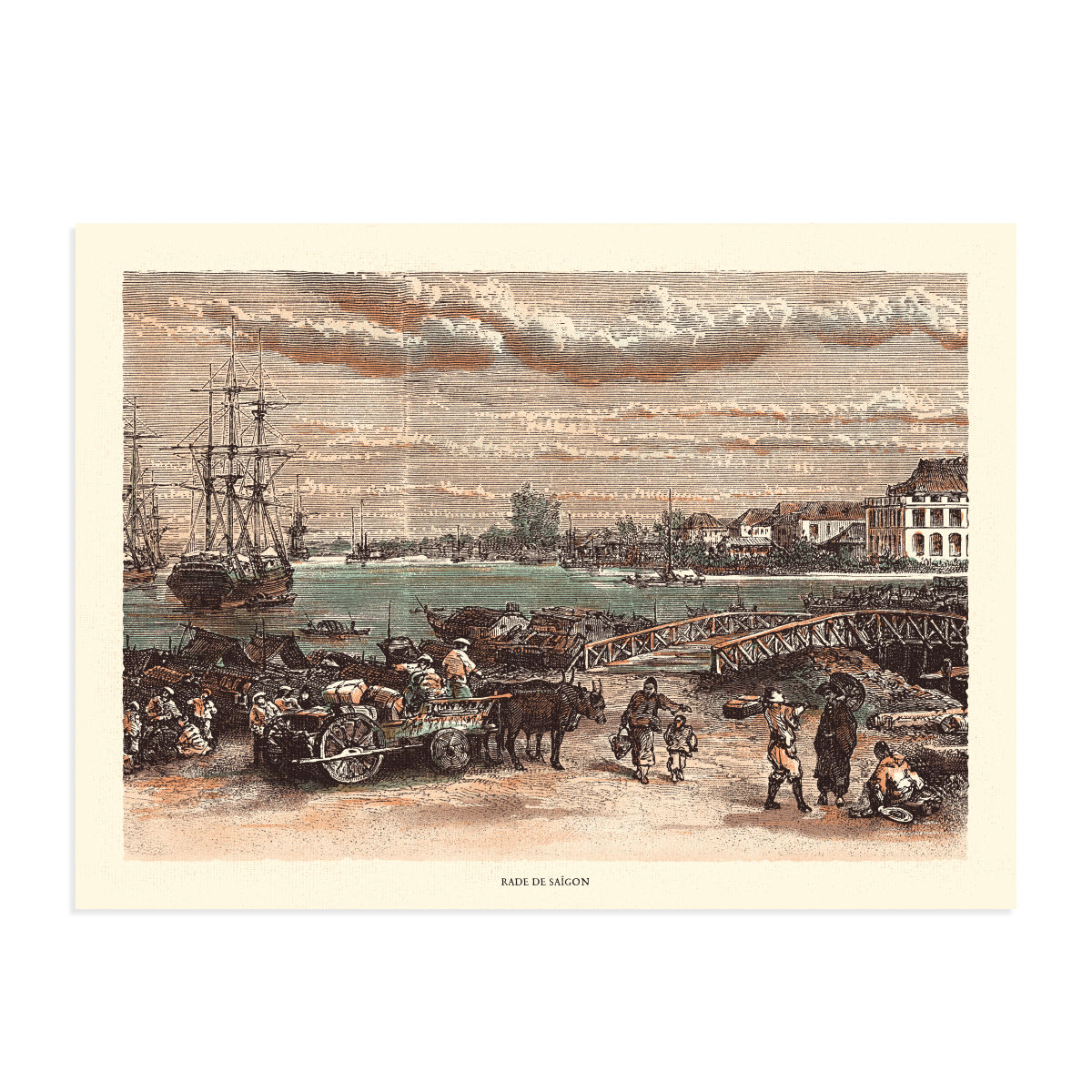 Bộ Postcards Hành trình thám hiểm Đông Dương (5 tấm) GIỚI THIỆU SẢN PHẨM: Bộ Postcards Hành trình thám hiểm Đông Dương gồm 5 tấm, do Đông A phục chế từ bộ minh họa trong ấn phẩm cùng tên của Đại úy hải quân Francis Garnier (Nguyễn Minh dịch và chú giải): Bến cảng Sài Gòn (Rade de Saigon) Vượt một đoạn nước xiết (Passage d’un Rapide) Mặt chính của Angkor Wat (Façade principale d'Angcor Wat) Di tích bảo tháp và ngôi chùa trong rừng ở Vien Chan (Tours et pagode en ruines dans la forêt (Vien Chan)) Một gia đình thổ dân Thái (Famille de sauvages Thai)
