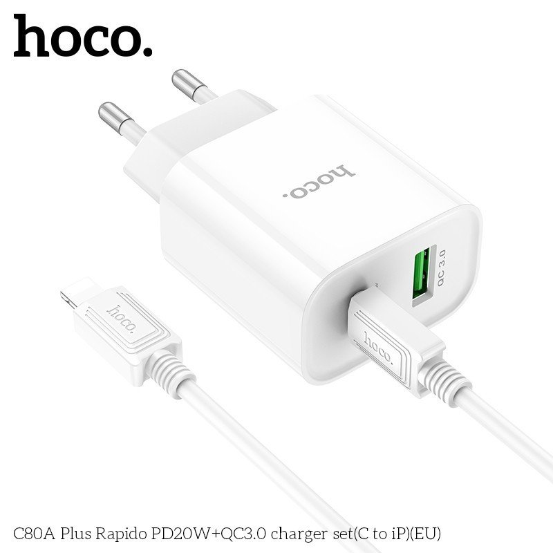 ✨Bộ Sạc Nhanh Dành Cho Hoco. C80A Plus PD20W + QC3.0 Type-C To IP Dây Dài 1m Hàng Chính Hãng