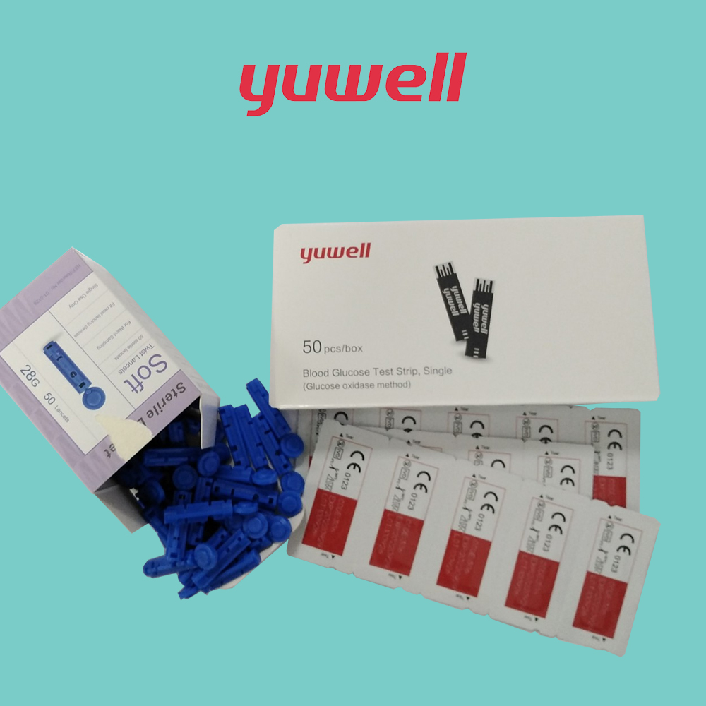 Que thử sử dụng công nghệ 5 điện cực: Que thử 5 điện cực chất lượng đạt chuẩn bệnh viện. Cảm biến nhiệt độ: máy báo LO khi nhiệt độ thấp hơn 10 Kiểm nghiệm lượng máu thử đủ hay chưa Bổ sung dung tích hồng cầu Kiểm nghiệm que thử: CODE que thử sai, hiện “E02”, que thử bị lỗi, hiện “E01” Kiểm nghiệm que thử lần 2 Kim lấy máu dùng cho bút thử đường huyết hộp 50 kim. Dùng cho nhiều loại máy: các dòng máy Yuwell. Kim lấy máu tiệt trùng, dùng lắp vào bút lấy máu không đau Kim gồm hai phần: thân bằng nhựa y tế Đầu kim: bằng kim loại tiệt trùng, được bảo vệ bằng chụp nhựa y tế tiệt trùng. Sản phẩm đạt tiêu chuẩn chất lượng của liên minh Châu Âu.