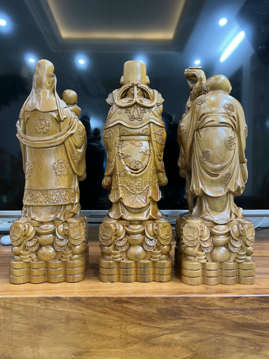 ✨Bộ tượng phật tam đa phúc lộc thọ bằng gỗ bách xanh thơm phức kt cao 40×13×11,5cm