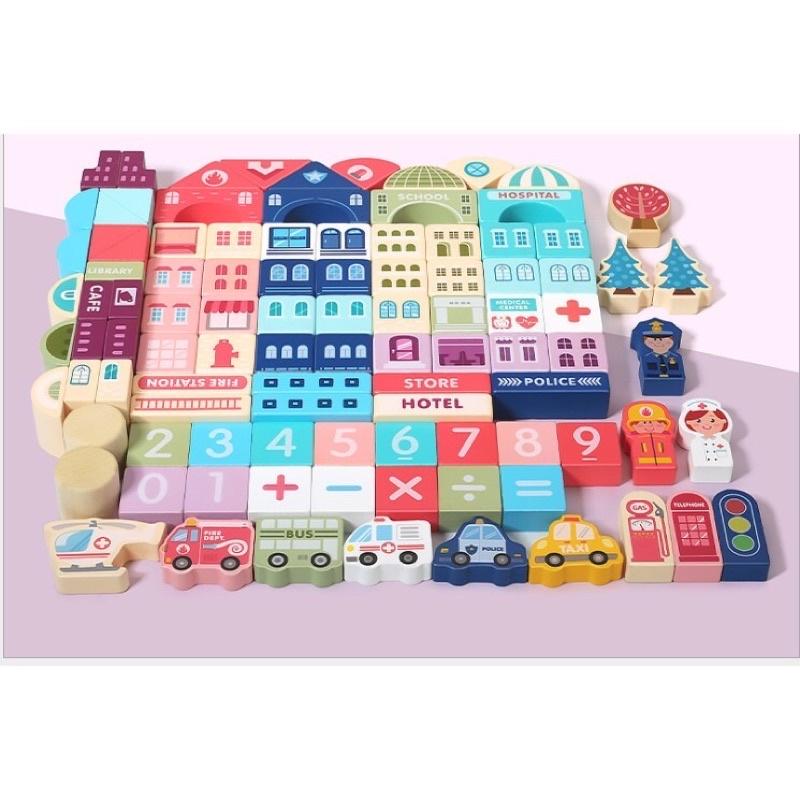 ✨Bộ xếp hình khối mô hình thành phố thu nhỏ bằng gỗ, có tranh ghép nền, giúp bé tăng khả năng sáng tạo