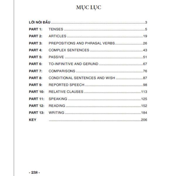 Cuốn sách bao gồm 13 phần, được bố cục theo từng chuyên đề về ngữ pháp nhằm giúp các em ôn tập và củng cố những kiến thức ngữ pháp đã học, đồng