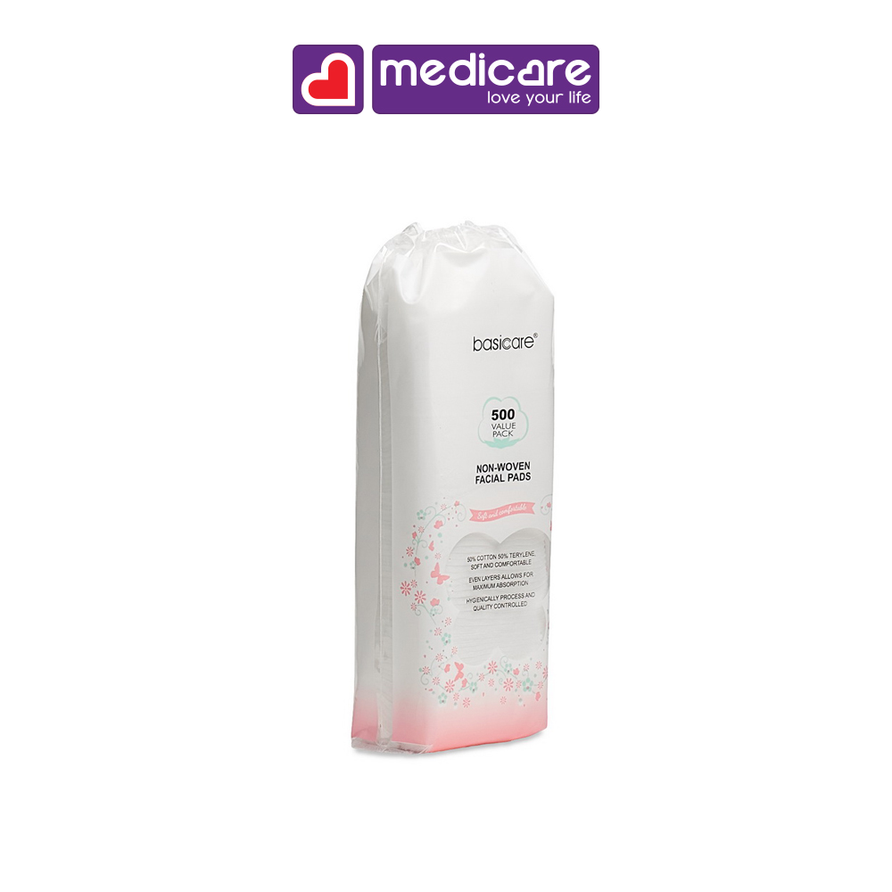 ***0130709 Bông Tẩy Trang BASICARE Siêu Mỏng 1193 +Đơn vị tính và Quy cách đóng gói: Một gói – 500 miếng. +Nước xuất xứ: sản xuất tại Trung Quốc. +50% cotton 50% terylene cho kết