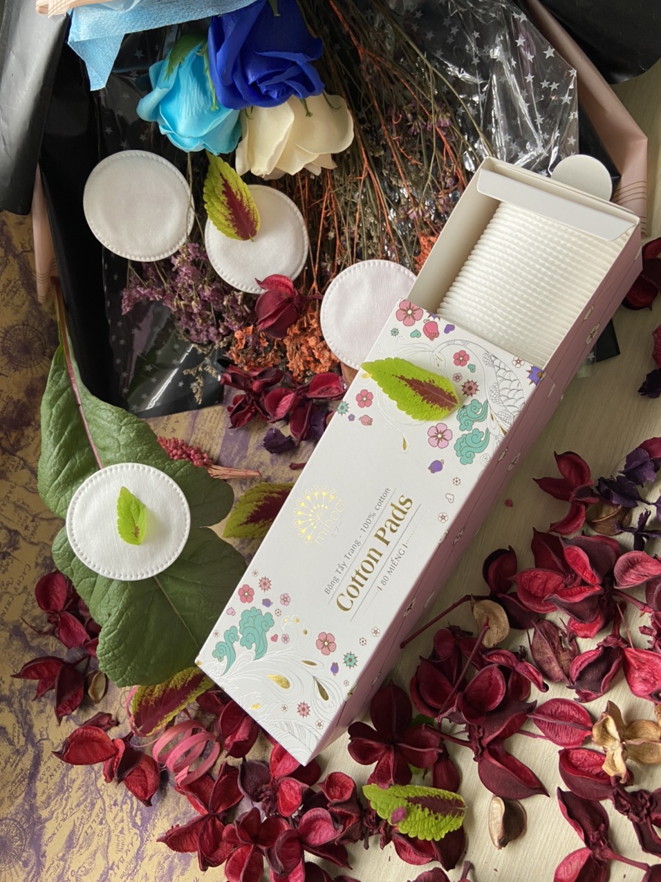 - Dùng lau khô mặt sau khi rửa, thay cho khăn mặt. Bông tròn ép chặt biên, đường kính 5.7mm, bông tự nhiên cotton 100%