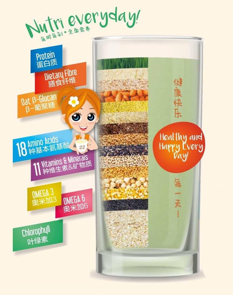 LÀ SẢN PHẨM ORGANIC - GIÁ TRỊ DINH DƯỠNG TỰ NHIÊN CAO Chiết xuất từ các loại ngũ cốc, quả và hạt. Gồm có: gạo lứt, gạo đỏ, gạo nếp đỏ, kê hữu cơ, lúa mì trắng, hạnh nhân, lúa mạch, đậu garbanzo, đậu nâu, đậu đỏ, đậu nành - đen, đậu Hà Lan, đậu xanh, hạt lanh hữu cơ, hạt sen, mè đen, tấm ngô, mạ lúa mì hữu cơ, cám yến mạch, vỏ cây mã đề, tinh chất mầm đậu nành và beta glucan. CÔNG DỤNG: Là sản phẩm Organic, mang giá trị dinh dưỡng tự nhiên cao giúp: