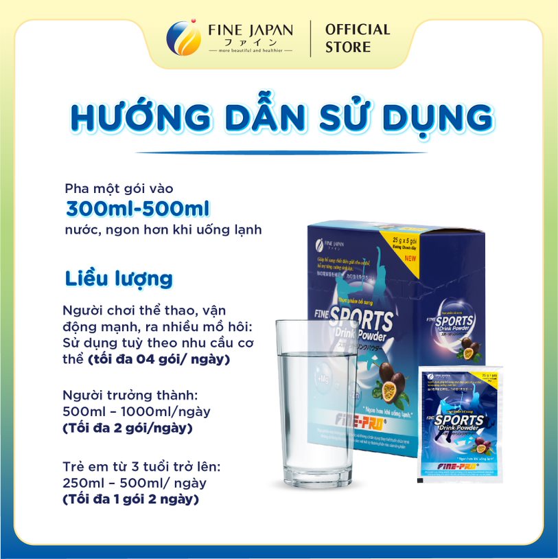 Nước uống bù nước và chất điện giải (Oresol) Sport Drink Powder - Fine Japan Vietnam - Hộp 500*5 gói; Bột pha nước có gaBí quyết của người Nhật BảnDành cho người chơi thể thao,