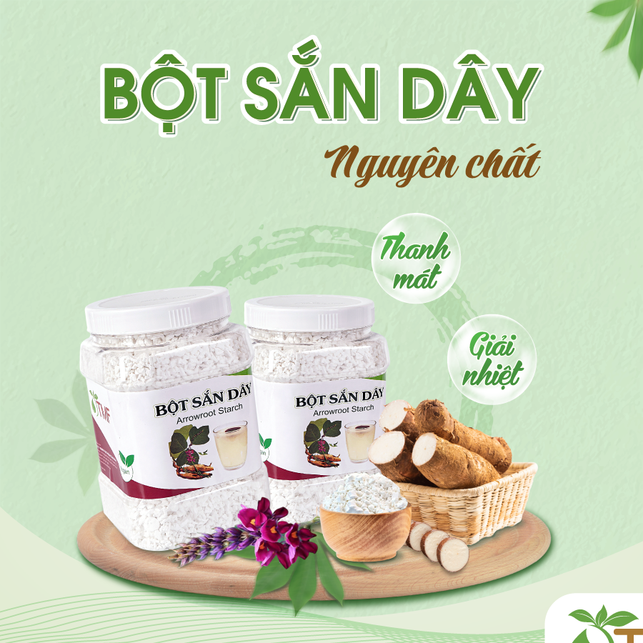 Bột sắn dây nguyên chất được chế biến từ cây sắn dây và dùng nhiều trong đời sống hàng ngày. Bột sắn dây là loại thực phẩm vừa được dùng để pha thành thức uống, vừa được nấu chín để ăn như món chè, sú