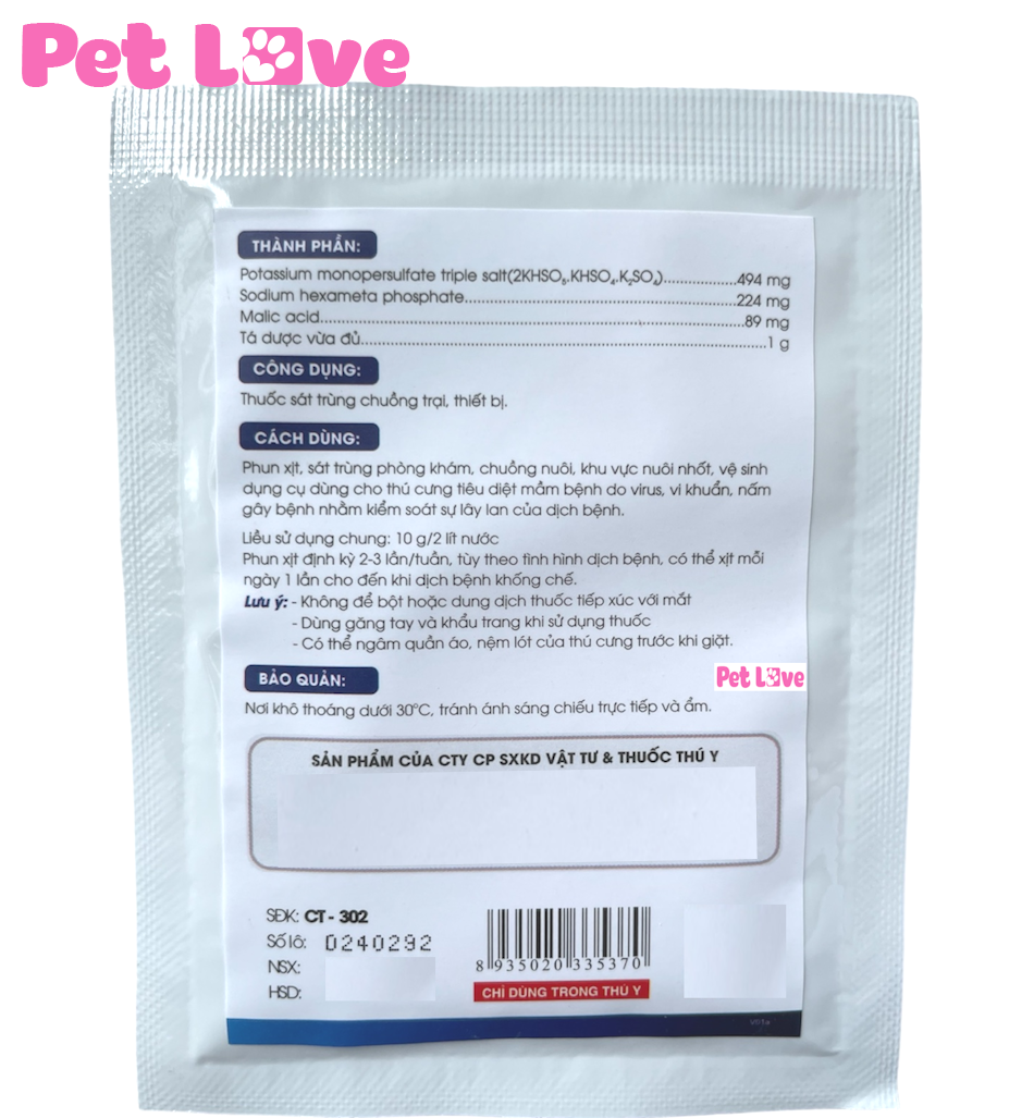- Liều sử dụng: 10g/ 2 lít nước. LƯU Ý: