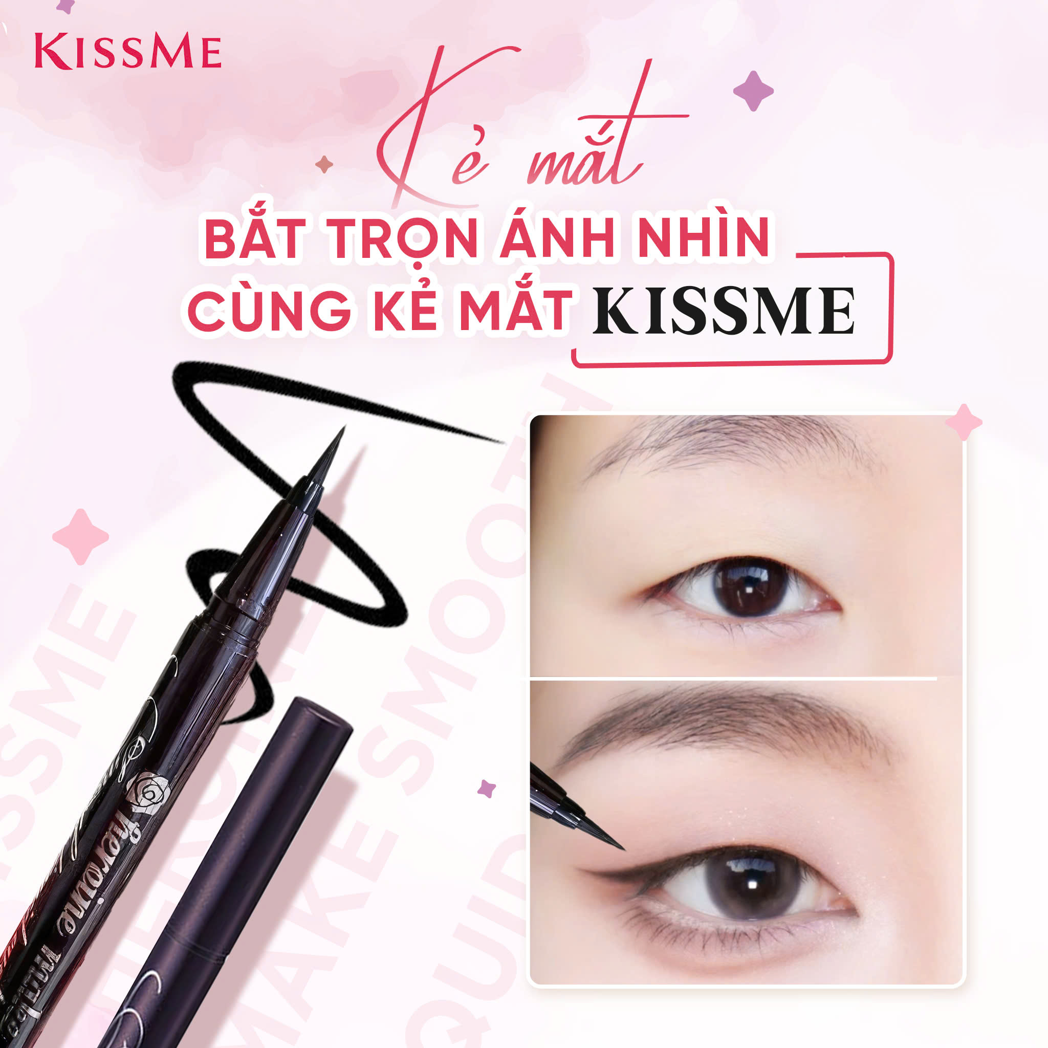 + Công Dụng - Bám dính lâu là khả năng tuyệt vời kẻ mắt nước mang lại cho lớp trang điểm. - Thiết kế đầu bút nhỏ, mảnh giúp bạn tự do sáng tạo với