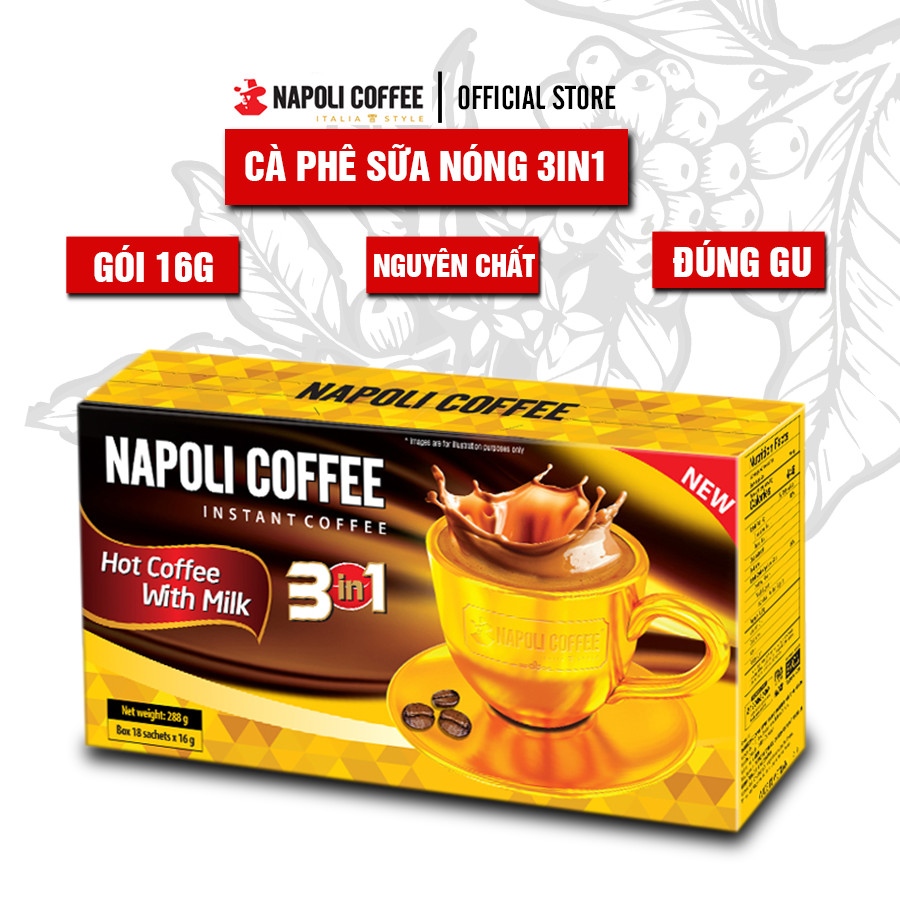 ✨Cà phê hòa tan sữa nóng 3in1 nguyên chất Robusta/Arabica Napoli Coffee hộp lớn (18 gói x 16g)