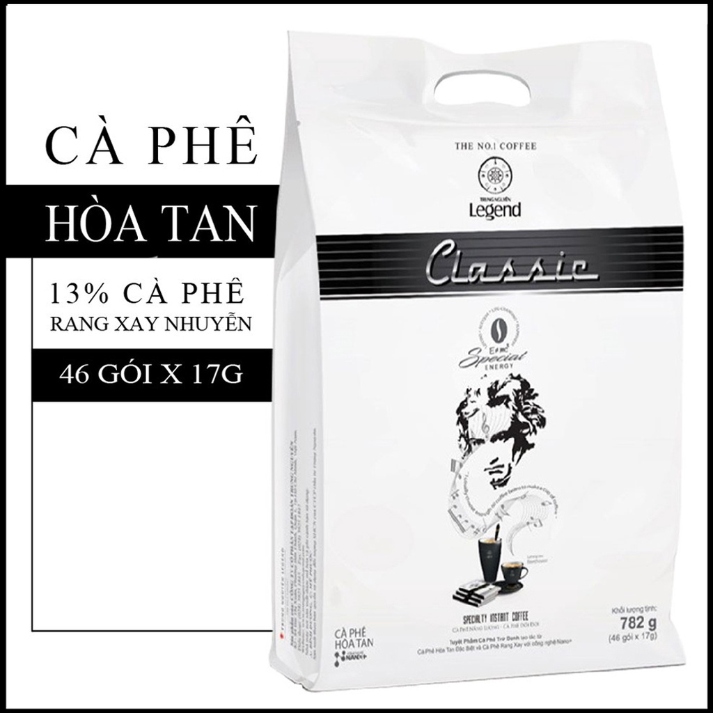 - Kế thừa những tinh túy từ dòng sản phẩm cà phê hòa tan G7 trứ danh của Tập đoàn Trung Nguyên Legend: kết hợp những loại cà phê nguyên liệu tốt nhất thế giới cùng công nghệ NaNo và những bí quyết huyền diệu của Phương Đông, Trung Nguyên Legend Classic sở hữu lượng cà phê xay đặc trưng, thể chất mạnh cùng vị đắng đậm pha lẫn chút ngọt bùi đầy bản sắc. HƯỚNG DẪN SỬ DỤNG: