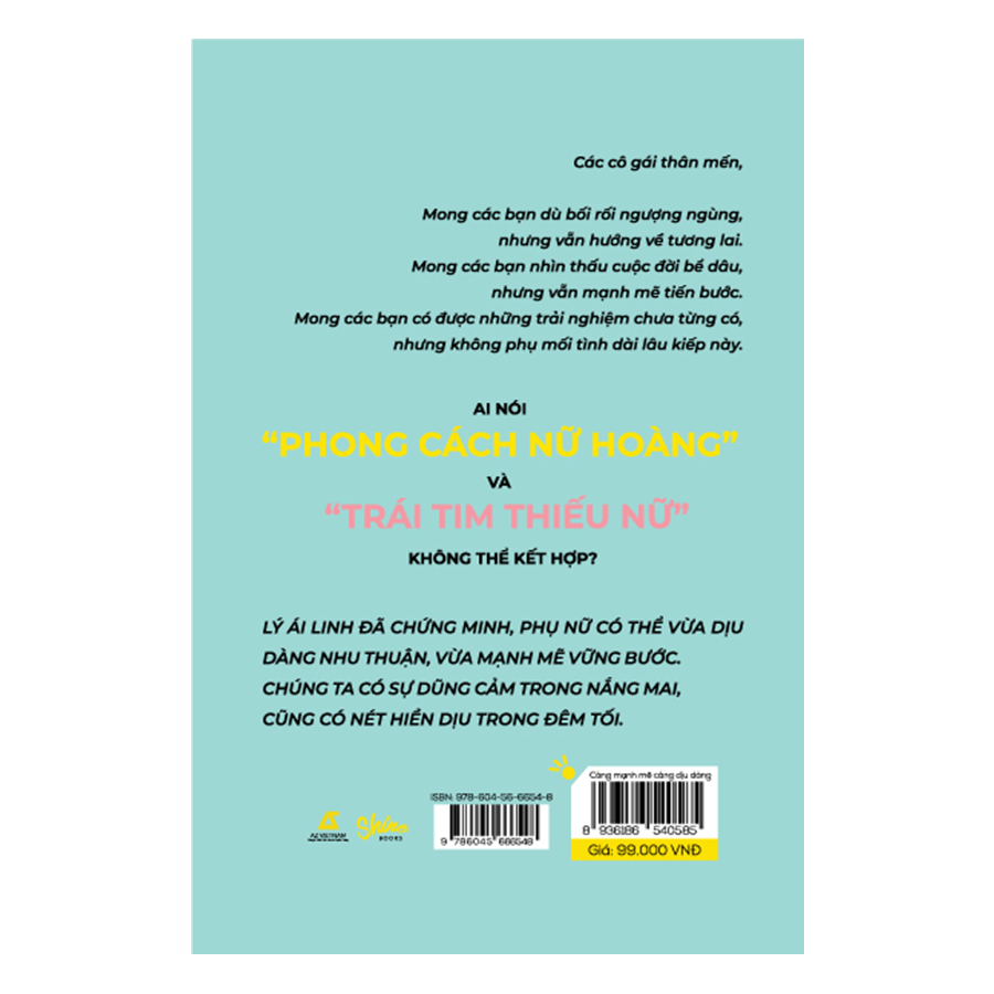 “Càng mạnh mẽ, càng dịu dàng” là giáo án tiếp theo, cũng là giáo án tuyệt vời nhất mà tác giả Lý Ái Linh muốn dành cho những người phụ nữ mang trong mình sự dũng cảm trong nắng mai và cả nét hiền dịu trong đêm tối để sống giữa trường học cuộc đời này thật tự do, đầy yêu thương.