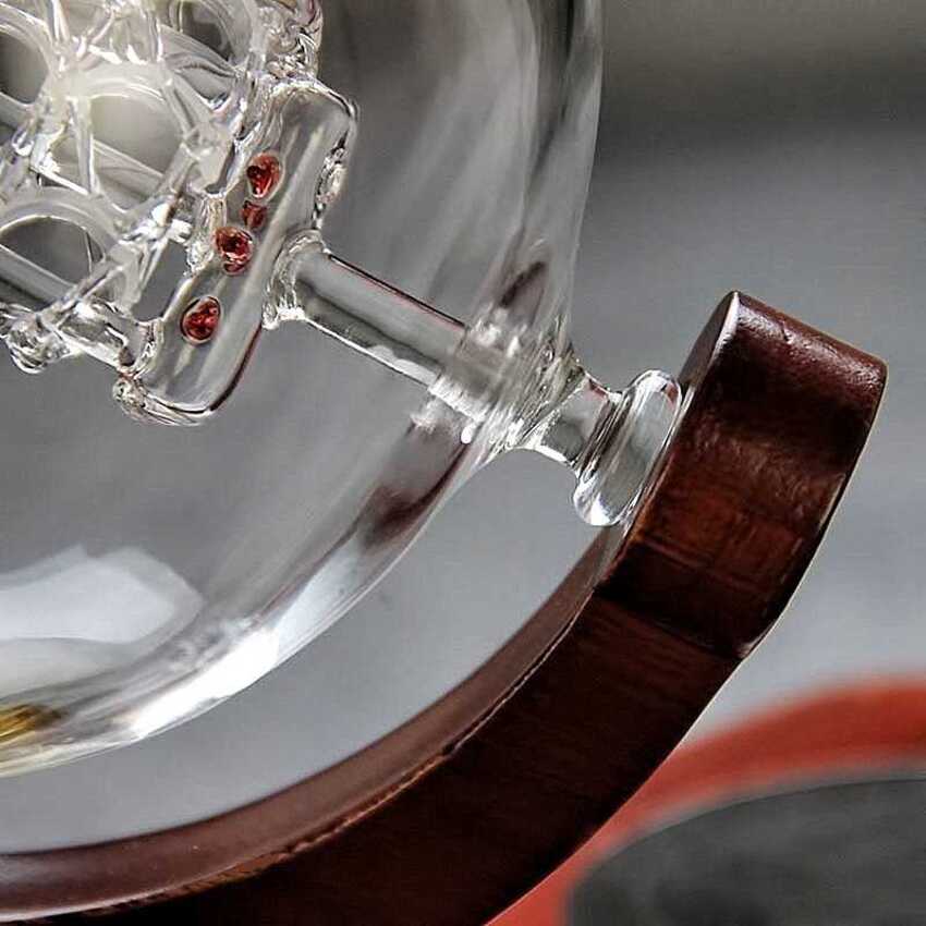Glass bottle 1500ml – Globe design – with wood base (E18 pattern)