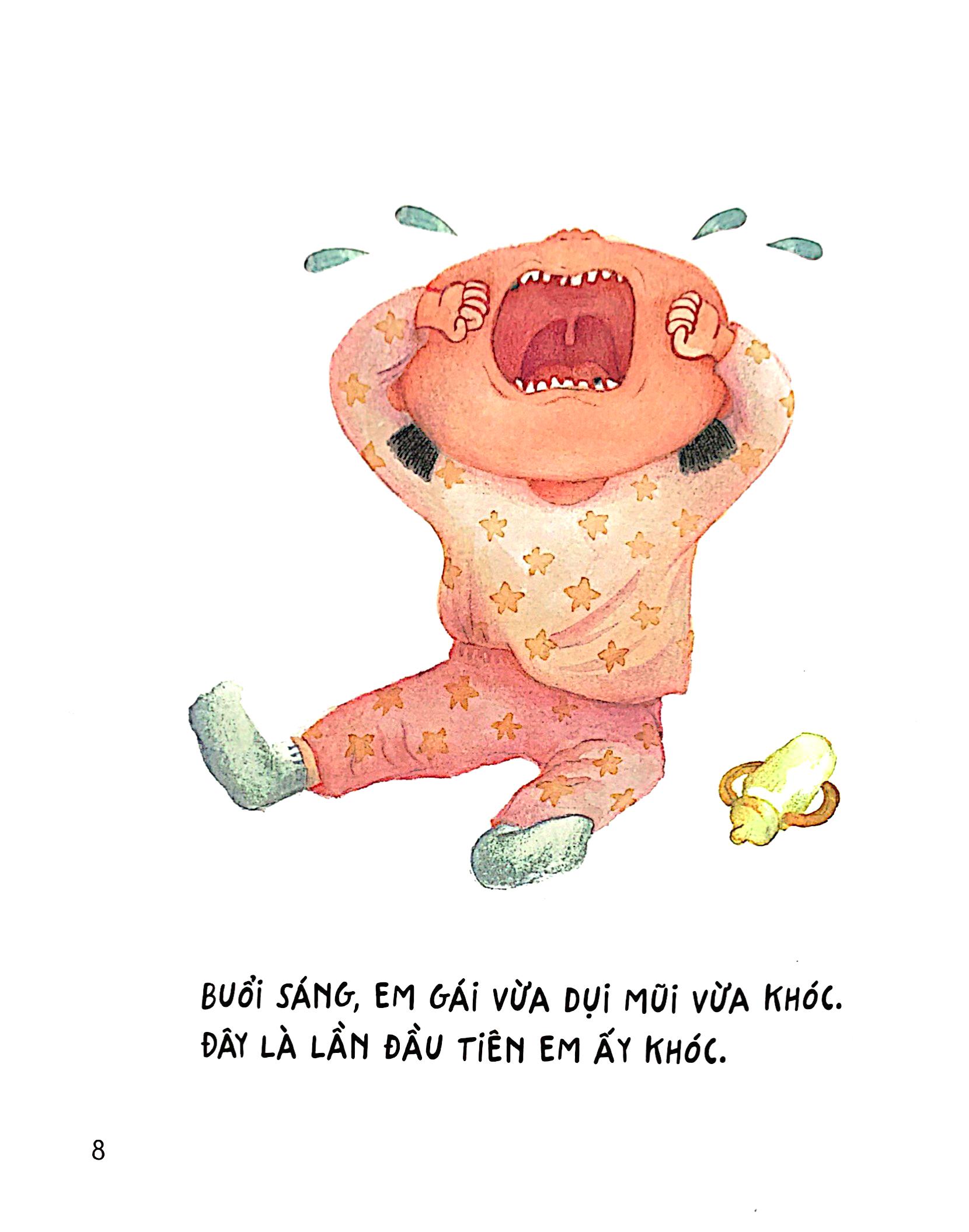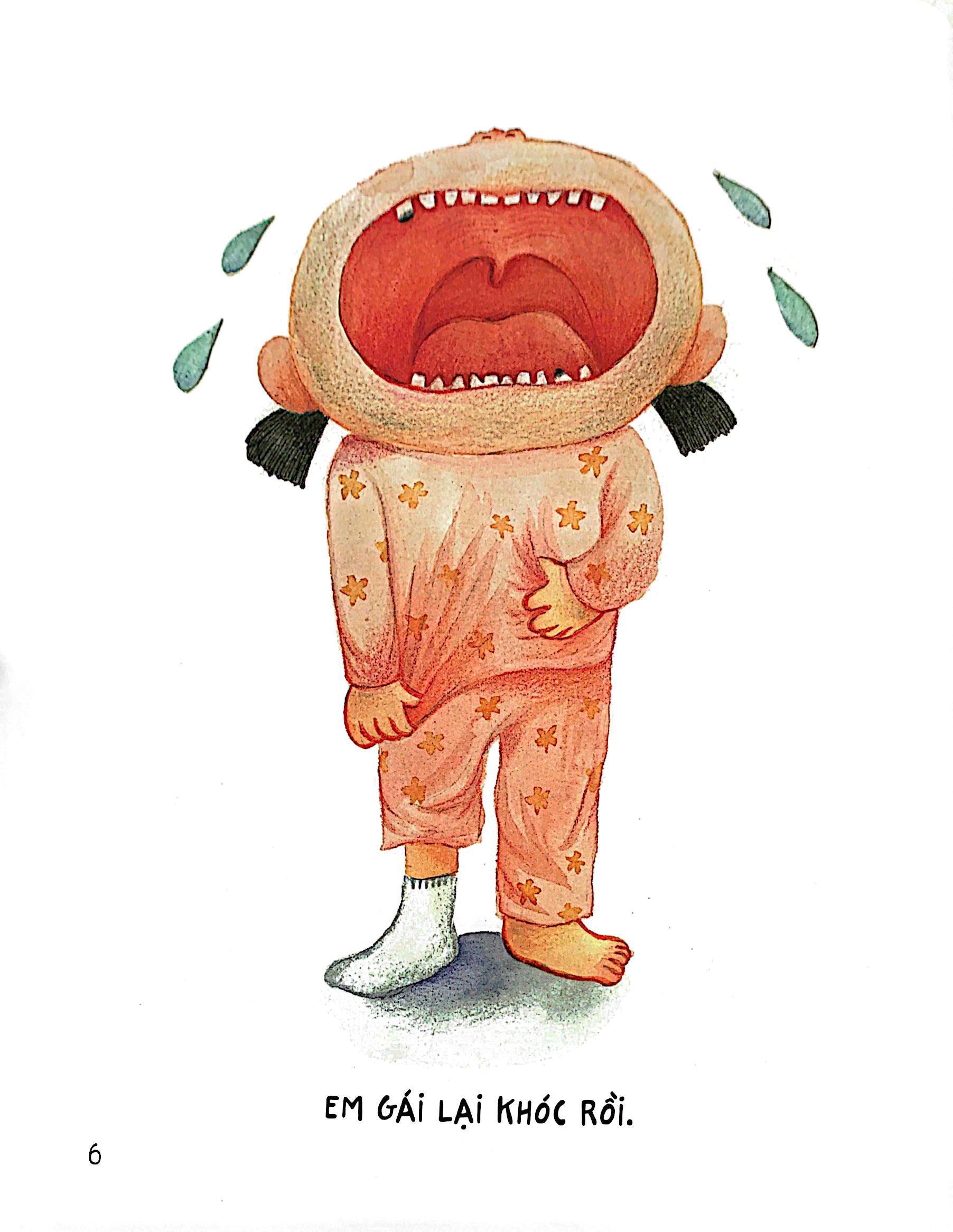 Em gái lúc nào cũng khóc. Sáng dậy em khóc, đi khám bệnh em khóc, không tự đeo được khẩu trang em lại khóc… Em gái mít ướt thật! Vậy mà khi không có em chơi cùng, sao tớ lại buồn như thế này nhỉ?