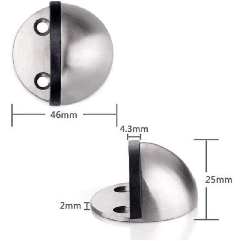 Tên Sản Phẩm : Chặn Cửa Bán Nguyệt Nam Châm - Chặn Cửa Gắn Sàn Giúp Hạn Chế Va Đập Cho Cánh Cửa, An Toàn - Inox Chuẩn Màu Sắc : Nhiều màu Kích Thước : Đường kính 4.5 cm Chất Liệu : Inox Chặn cửa bán nguyệt inox siêu hít nam châm chống va đập, ồn thông minh cho bé gắn sàn kèm miếng dán tường 3M, đồ ốc vít Giúp hạn chế va đập khi có gió hay cạnh cửa, tay nắm cửa làm xước tường, đồ nội thất, giữ nguyên vẻ đẹp cho ngôi nhà bạn. Thích hợp sử dụng cho tất cả các loại cửa đi ra vào trong gia đình. Chất liệu bằng inox nên rất bền. Gần như không bao giờ hỏng Bề mặt tiếp xúc với cửa được gắn cao su. Có thể lắp đặt trên bất kì loại vật liệu gì. Kiểu dáng nhỏ gọn, hợp thời trang.mờ) Tất cả chặn cửa đều bao gồm miếng dán 3M để dán xuống nền (không cần khoan lỗ) và 2 vít kèm theo để khoan vít xuống sàn để đảm bảo cực chắc. Sản phẩm có kèm theo băng dính 2 mặt và vít để tùy ý lắp đặt phù hợp với cửa của bạn, dùng tiện hơn rất nhiều mọi người nhé Chiều rộng: 44 mm Chiều cao: 25 mm Độ dày cao su: 5 mm Chất liệu: inox mờ trọng lượng 67g Kích thước: Trên ảnh Chất liệu Hợp kim Inox pha crom cực bền đẹp chắc chắn và không han gỉ Màu sắc: Màu Bạc (màu inox Xuất xứ: Trung Quốc Cách lắp đặt: Sản phẩm có thể gắn xuống sàn sử dụng miếng dán 3M siêu chắc nhưng Shop khuyến cáo khách hàng nên sử dụng khoan vít để sản phẩm được cố định chắc chắn nhất. Chặn cửa hình bán nguyệt có nam châm chống va đập, chất liệu inox 304 cao cấp