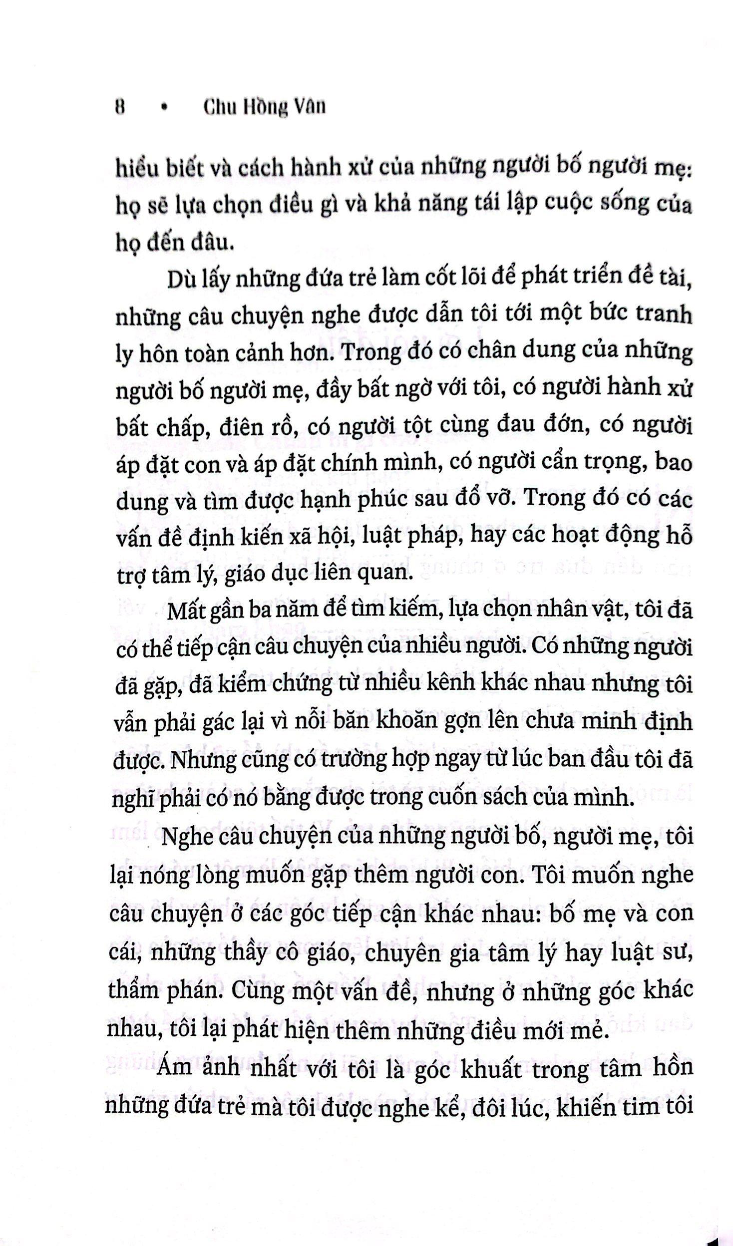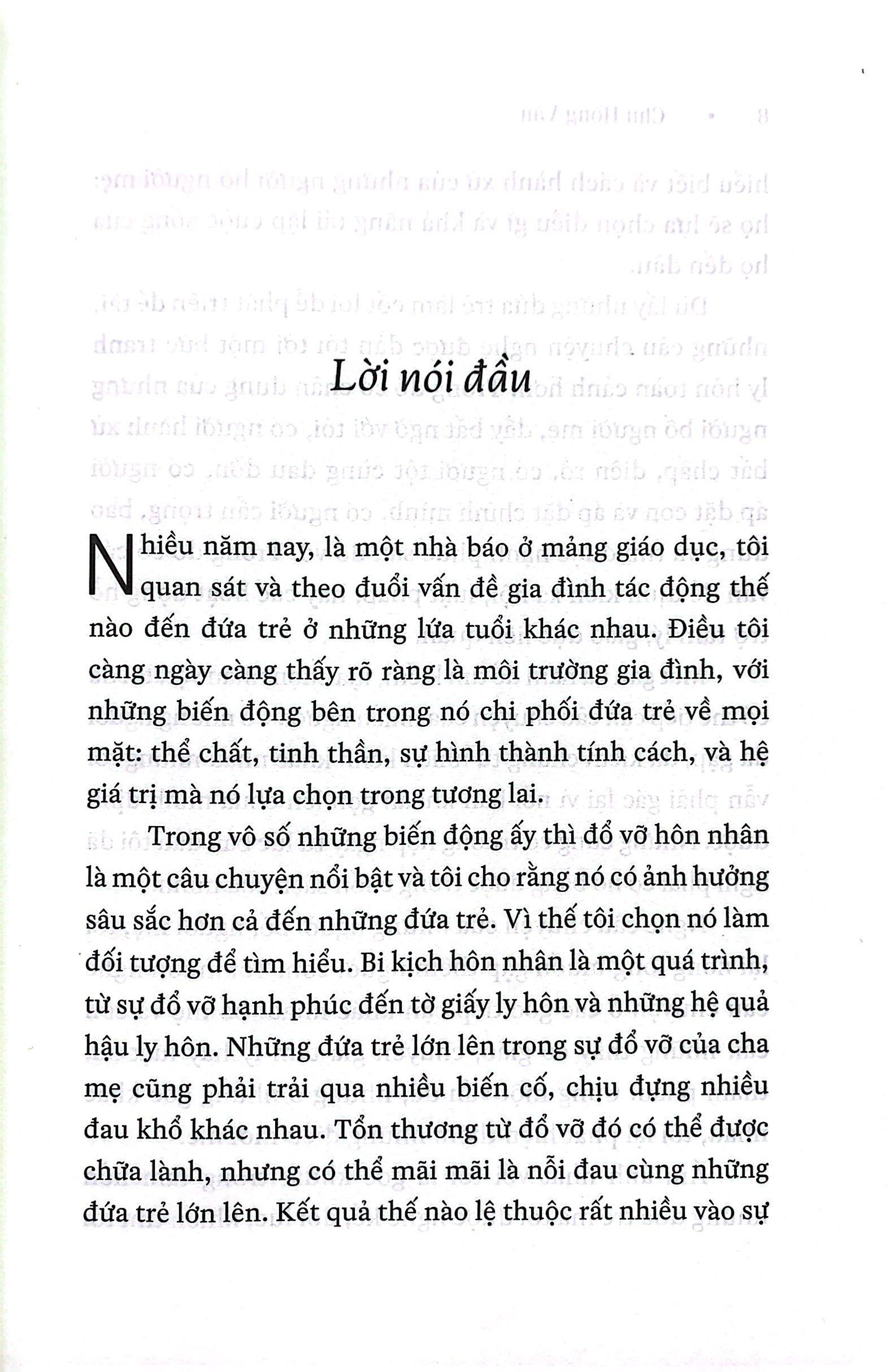 Ở phía khác, cuốn sách cũng chia sẻ những câu chuyện đầy xúc động. Ly hôn không phải là chấm hết, bằng tình yêu thương và lòng bao dung, bằng việc cùng nhìn vào những đứa trẻ để khép lại những tổn thương cũ, tất cả có thể cùng bước qua đổ vỡ. Hạnh phúc mới lấp lánh vẫn ở phía trước.