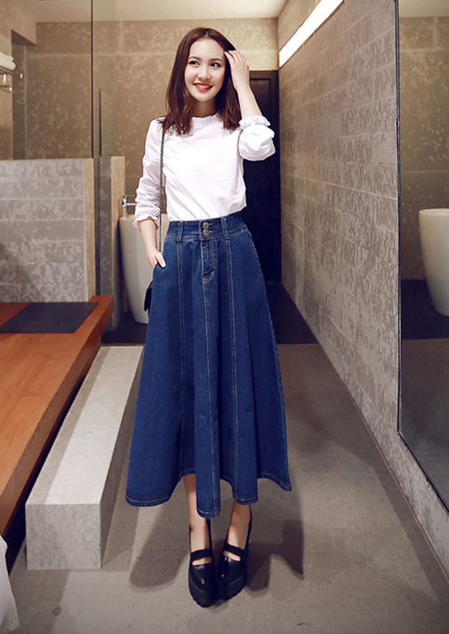 ✨Chân váy jean xòe dài 2 nút C011