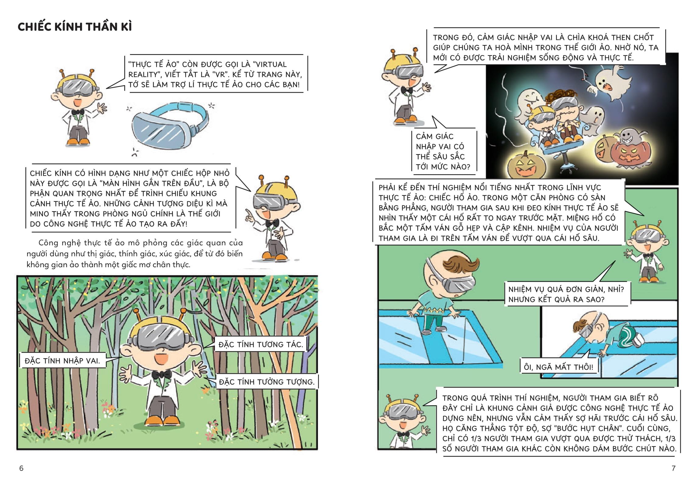 “Công nghệ thực tế ảo” là một trong những khái niệm khá quen thuộc trong những năm gần đây. Sản phẩm cộng nghệ này thậm chí còn được nhiều người mệnh danh là công cụ biến “giấc mơ” thành “hiện thực”. Vậy “thực tế ảo” thực sự là gì? Vì sao thực tế ảo có thể giúp chúng ta kiểm soát “giấc mơ”? Tương lai của thực tế ảo sẽ ra sao? Hãy cùng khám phá những bí ẩn khoa học của thực tế ảo thông qua những mẩu truyện tranh nhẹ nhàng trong Chuyên Gia Nhí Khám Phá Công Nghệ Mới – Thực Tế Ảo nhé!