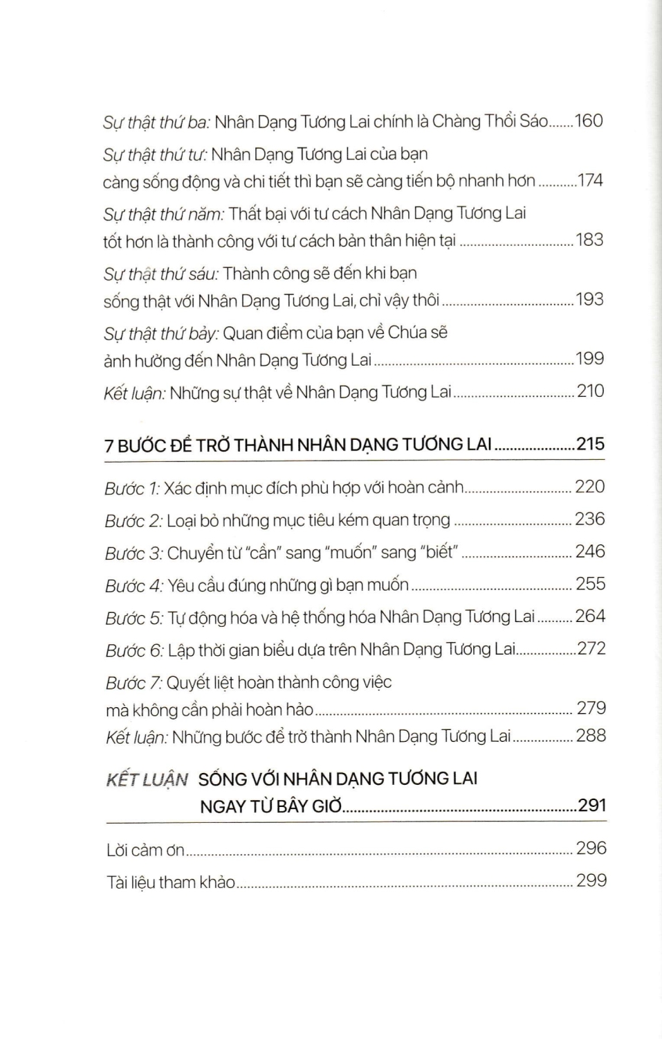 Việc kết nối với Nhân Dạng Tương Lai sẽ nâng tầm con người và hoàn cảnh hiện tại của bạn. Bạn sẽ thật sự biết trân trọng cuộc sống hiện tại của mình – một kho báu vô giá. Kết nối của bạn với tương lai chính là cách để bạn có thể sống một cách tự chủ và mạnh mẽ ngay từ bây giờ.