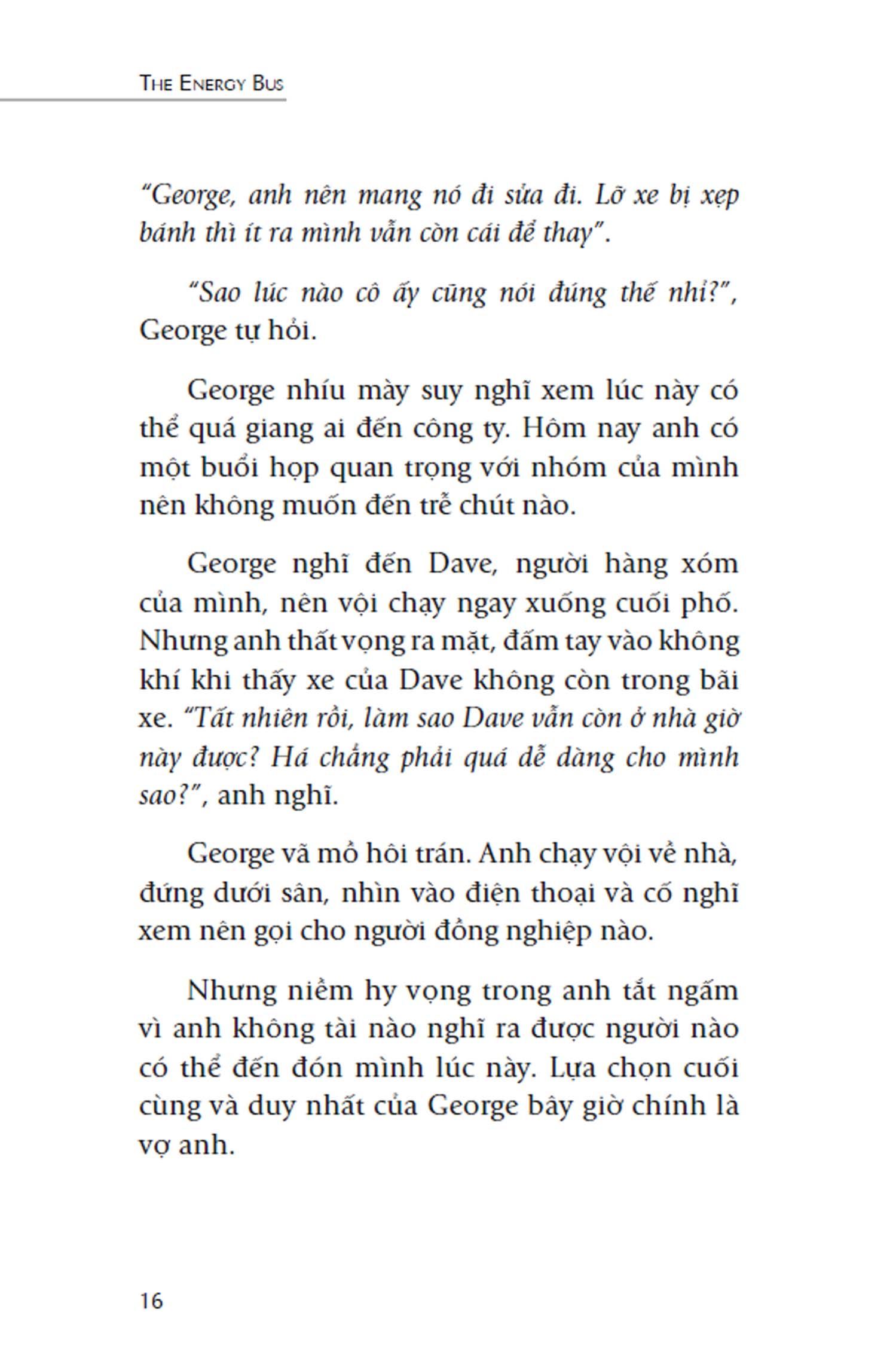 Từ kinh nghiệm của bản thân cũng như những người xung quanh, tác giả Jon Gordon đã tìm ra mười quy tắc giúp mọi người xây dựng nguồn năng lượng tích cực. Các quy tắc được ông truyền tải một cách dễ hiểu thông qua câu chuyện của George trong cuốn sách “Chuyến xe buýt đổi đời” (tái bản từ cuốn Chuyến xe năng lượng).