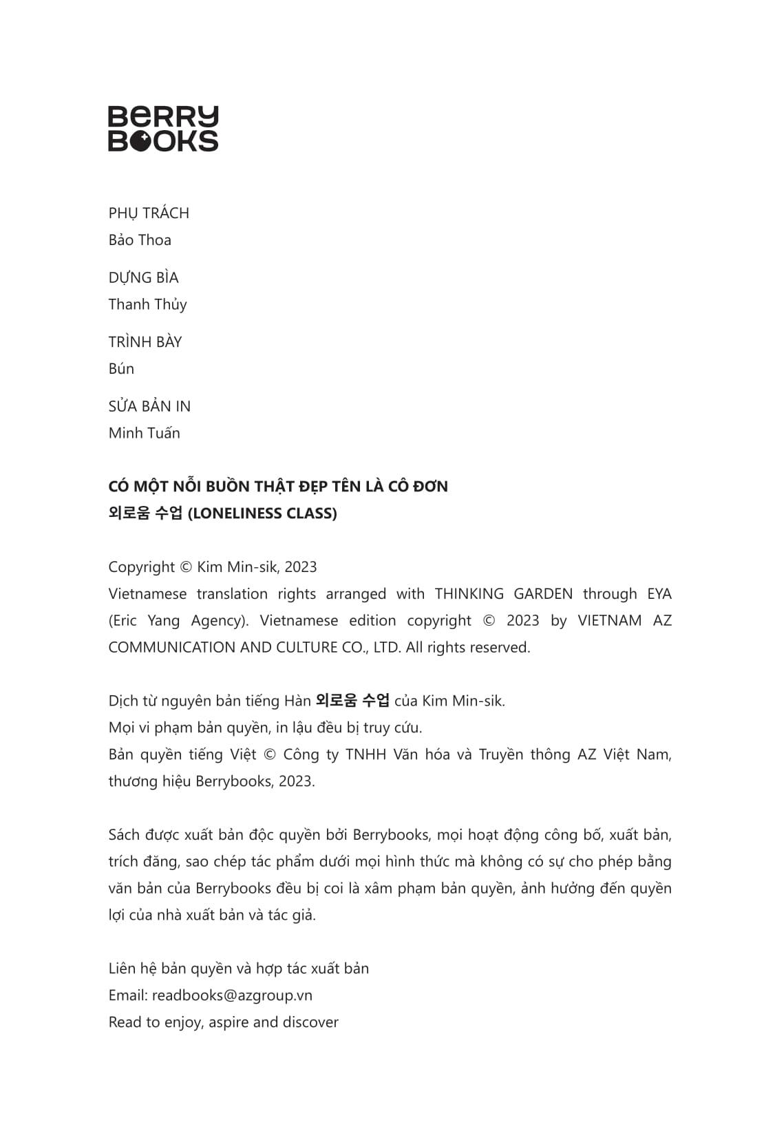 Có Một Nỗi Buồn Thật Đẹp Tên Là Cô Đơn Nhà xuất bản : Nhà Xuất Bản Thế Giới. Công ty phát hành : Berry Books. Tác giả : Kim Min-sik. Kích thước : 20.5