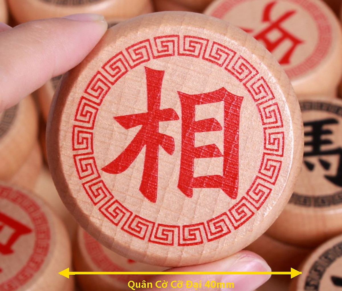 - Phân loại kích thước quân cờ gỗ sồi, gồm cỡ trung đường kính 3,9cm dày 1,5cm Có thể nói rằng, Cờ Tướng là một trò chơi trí tuệ có truyền thống hàng trăm năm ở nước ta ngày càng phát triển mạnh mẽ và trở thành một môn thể thao được nhiều người yêu thích. Các cuộc thi đấu Cờ Tướng từ các cơ sở, địa phương cho tới các giải toàn quốc và quốc tế được tổ chức ngày càng nhiều hơn, do đó việc soạn thảo và ban hành Luật Cờ Tướng là rất cần thiết. Trước tất cả những đòi hỏi đó, Ban chuyên môn Cờ Tướng thuộc Liên đoàn Cờ Việt Nam đã soạn thảo quyển Luật Cờ Tướng này để các kỳ thủ, trọng tài, các nhà tổ chức… tiến hành thuận lợi công tác điều hành các trận đấu, các giải cờ trong phạm vi toàn quốc. THỨ NH.ẤT – MỤC ĐÍCH CỦA MỘT VÁN CỜ Ván cờ được tiến hành giữa hai đấu thủ, một người cầm quân Trắng, một người cầm quân Đen. Mục đích của mỗi đấu thủ là tìm mọi cách đi quân trên bàn cờ theo đúng luật để chiếu bí Tướng (hay Soái) của đối phương, giành thắng lợi. THỨ HAI – BÀN CỜ VÀ QUÂN CỜ Bàn cờ Bàn cờ là một hình chữ nhật do 9 đường dọc và 10 đường ngang cắt nhau vuông góc tại 90 điểm hợp thành. Một khoảng trống gọi là sông (hay hà) nằm ngang giữa bàn cờ, chia bàn cờ thành hai phần đối xứng bằng nhau. Mỗi bên có một cung Tướng hình vuông do 4 ô hợp thành tại các đường dọc 4, 5, 6 kể từ đường ngang cuối của mỗi bên, trong 4 ô này có vẽ 2 đường chéo xuyên qua. Bên dưới là bên Trắng (đi tiên), bên trên là bên Đen (đi hậu). Các đường dọc bên Trắng được đánh số từ 1 đến 9 từ phải qua trái. Các đường dọc bên Đen được đánh số từ 9 tới 1 từ phải qua trái. Quân cờ Mỗi ván cờ lúc bắt đầu phải có đủ 32 quân, gồm 7 loại chia đều cho mỗi bên gồm 16 quân Trắng và 16 quân Đen. 7 loại quân có ký hiệu và số lượng như sau: 1 Tướng (Soái), 2 Sĩ, 2 Tượng, 2 Xe, 2 ph.áo, 2 Mã và 5 Tốt (hay gọi là Chốt hoặc Binh). Quy định quân Cờ Tướng chỉ có hai màu là Trắng và Đen (Đấu thủ cầm quân Trắng được đi trước). Các văn bản ghi chép đều thống nh.ất dùng hai màu này. Các loại quân cờ hiện nay được chơi có nhiều màu. Nếu là 2 màu Đỏ và Xanh thì Đỏ được coi là Trắng, Xanh là Đen. Còn với các màu khác thì quy ước màu nhạt là Trắng, màu sẫm là Đen. Khi bắt đầu ván đấu, mỗi bên phải xếp quân của mình theo quy định trên các giao điểm THỨ BA – ĐI QUÂN Quân cờ được xếp tại các giao điểm và di chuyển từ giao điểm này sang giao điểm khác theo đúng quy định cho từng loại quân. Nước đi đầu tiên của ván cờ thuộc bên Trắng (Đỏ), sau đó đến bên Đen (Xanh) và luân phiên thứ tự đó cho đến khi kết thúc ván cờ.