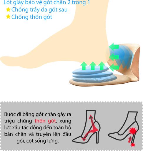 - Sản phẩm số 02: Lót giày bảo vệ gót chân 2 trong 1 vừa chống thốn gót chân vừa chống trầy da gót sau hiệu quả.