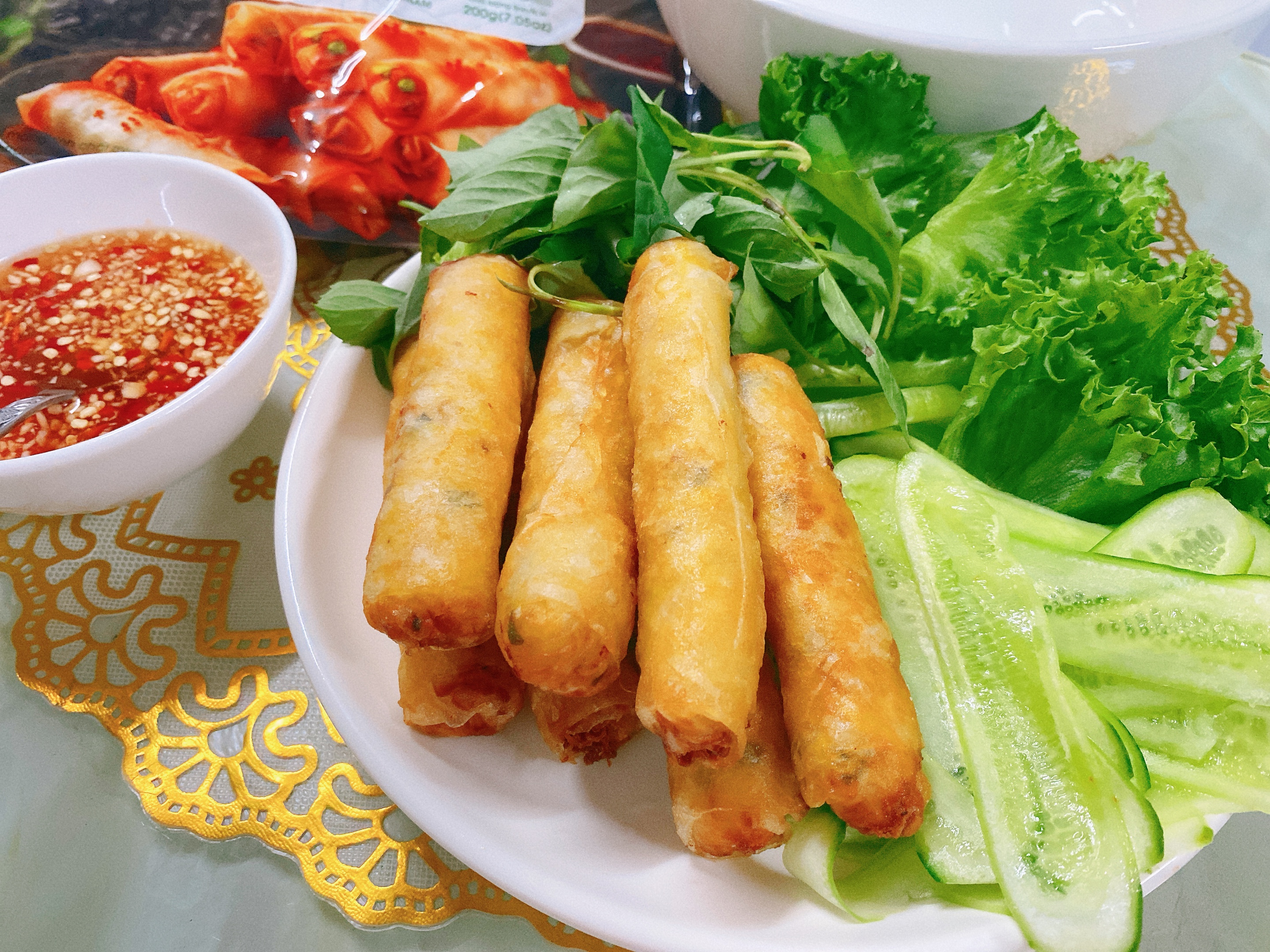 Với combo ăn ý sẽ cho bạn một bữa tiệc cuốn siêu ngon và hấp dẫn. Món bánh tráng cuốn chả giò và sự kết hợp giữa bánh tráng trắng, bánh tráng chả giò, bún