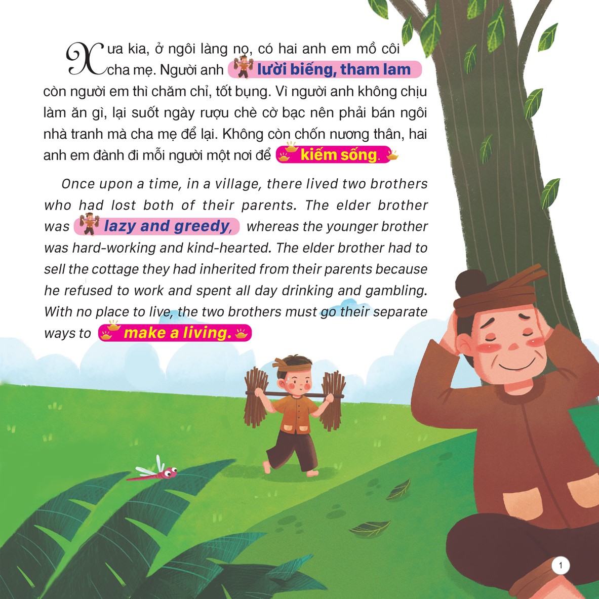 Để các em thêm trân trọng và yêu thích những câu chuyện thân thuộc ấy, chúng tôi ấn hành bộ sách Truyện cổ tích Việt Nam cô đọng, ngắn gọn, với tranh minh họa dễ thương và trong sáng. Đặc biệt, bộ sách được viết bằng song ngữ Việt-Anh giúp trẻ phát triển năng lực ngôn ngữ, kết hợp với phần trò chơi cực kỳ hấp dẫn giúp trẻ rèn trí thông minh và ghi nhớ kiến thức. Những cuốn sách trong series này chắc chắn sẽ không thể thiếu được trong tủ sách của các độc giả nhí, các bậc phụ huynh và thầy cô