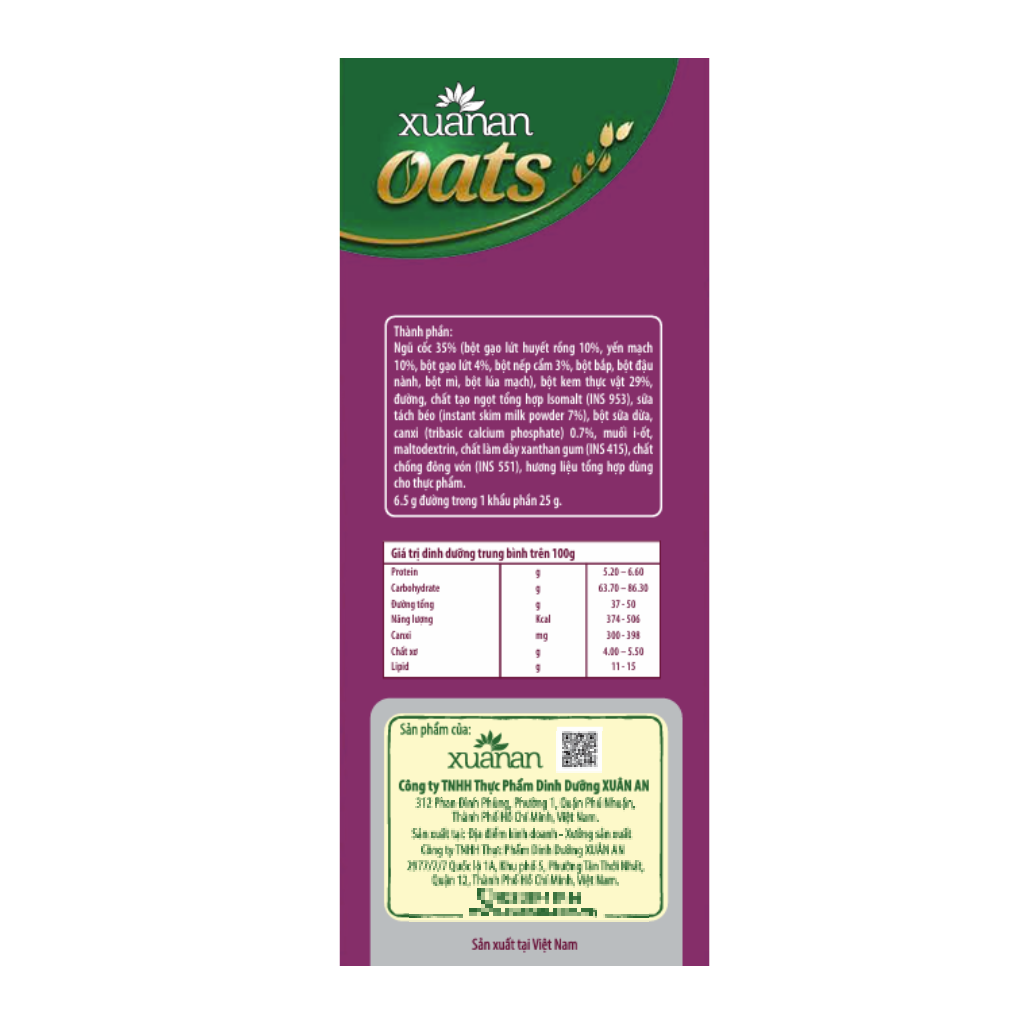 Combo Ngũ Cốc Gạo Lứt Huyết Rồng 400G (25G16 GÓI) + Ngũ Cốc Yến Mạch Hạnh Nhân Hạt Chia 400G (25G16 GÓI) [ít đường] Ngũ cốc GẠO LỨT Huyet rong là thức uống thơm ngon bổ dưỡng, được làm từ gạo lứt, yến mạch và nhiều loại ngũ cốc. Sản phẩm được bổ sung thêm can xi và sử dụng ít đường. Vitamin, khoáng chất, chất xơ tự nhiên giúp hấp thu dinh dưỡng tốt và thanh lọc cơ thể. Thành phần: Ngũ cốc 32% (gạo lứt huyet rong 10%, yến mạch 6%, gạo lứt, gạo nếp cẩm 3%, bắp, đậu nành, lúa mỳ, lúa mạch), bột kem thực vật 29%, đường, đường ăn kiêng Isomalt, sữa tách béo 7%(Instant Skim Milk Powder &%), bột dừa, Canxi 0.7%, Muối I-ốt, maltodextrin, chất maltodextrin làm dày xanthan gum (E415), chất chống đông vón (E551), hương liệu tổng hợp dùng cho thực phẩm. 6.5 g đường trong khẩu phần 25g Ngũ cốc YẾN MẠCH Hạnh nhân Hạt chia giàu dinh dưỡng và năng lượng, được làm từ yến mạch và nhiều loại ngũ cốc, ngoài ra còn có Hạnh nhân và Hạt chia là hai dưỡng chất chuyên biệt. Sản phẩm được bổ sung thêm can xi và sử dụng ít đường. Vitamin, chất xơ và đạm tự nhiên là nguồn dinh dưỡng tốt cho sức khỏe. Thành phần: Ngũ cốc 35% (Yến mạch 10%, bột gạo lứt 6%, bột gạo, bột bắp, bột đậu nành, bột lúa mì, bột lúa mạch), Hạt chia 3%, bột Hạnh nhân 3%, sữa bột nguyên kem, bột dừa, bột kem thực vật, đường, muối i-ốt, Canxi 0.7%, maltodextrin, chất là dày xanhthan gum (E415), chất chống đông vón (E551), hương liệu tổng hợp dùng cho thực phẩm. 6.75 gr đường trong khẩu phần 25g. Đối tượng sử dụng: Trẻ từ 3 tuổi trở lên và người lớn, người ăn theo chế độ giảm đường. Qui cách đóng gói: (25g x 16 gói) 400g/túi- 24 túi/thùng Hướng dẫn sử dụng: Hòa 1 gói Ngũ cốc với khoảng 125ml nước sôi, khuấy đều trước khi dùng. Dùng 2-3 gói mỗi ngày Bảo quản: Bảo quản nơi khô ráo, thoáng mát; tránh tiếp xúc trực tiếp với không khí và ánh nắng mặt trời. Thông tin cảnh báo: Không dùng khi sản phẩm bị rách, mốc hoặc đã hết hạn sử dụng. Sản phẩm của: Công ty TNHH Thực Phẩm Dinh Dưỡng Xuân An