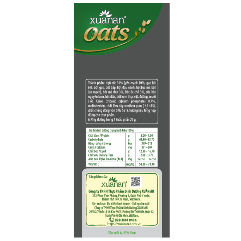 Yến mạch Úc Xuân An có nguyên liêu nhập khẩu trực tiếp 100% từ Úc . Sản phẩm có nhiều nhựa , trắng hơn và dai hơn .