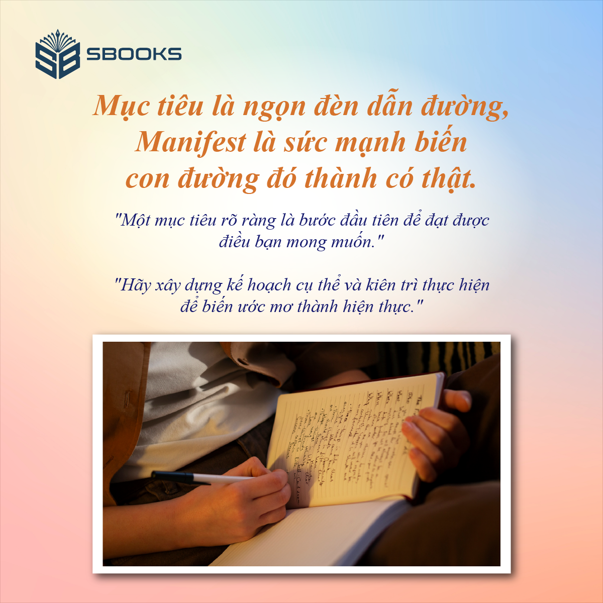 Cuốn sách này được chia thành các chương, từng bước đi từ việc khám phá nền tảng của Manifest, cách xác định mục tiêu rõ ràng, củng cố niềm tin, thiết lập các thói quen tích cực đến việc hành động để biến mơ ước thành hiện thực. Bạn sẽ không chỉ học cách thu hút những điều tốt đẹp vào cuộc sống mà còn tìm thấy sự cân bằng, bền vững và niềm vui sâu sắc từ bên trong. Mỗi chương đều cung cấp kiến thức, công cụ thực hành và những bài tập đơn giản để bạn dễ dàng áp dụng vào thực tế, giúp biến những ý tưởng tưởng chừng xa vời thành những bước đi cụ thể trên hành trình đến cuộc sống mà bạn hằng ao ước.