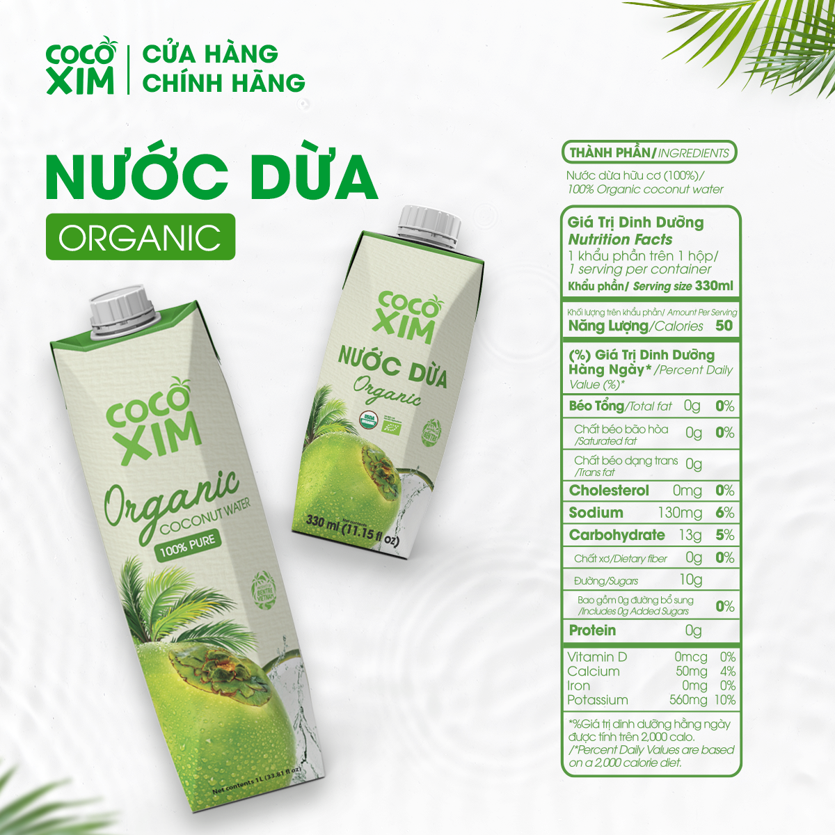 ✨Combo 3 Hộp Nước dừa đóng hộp Cocoxim Organic dung tích 330ml/Hộp