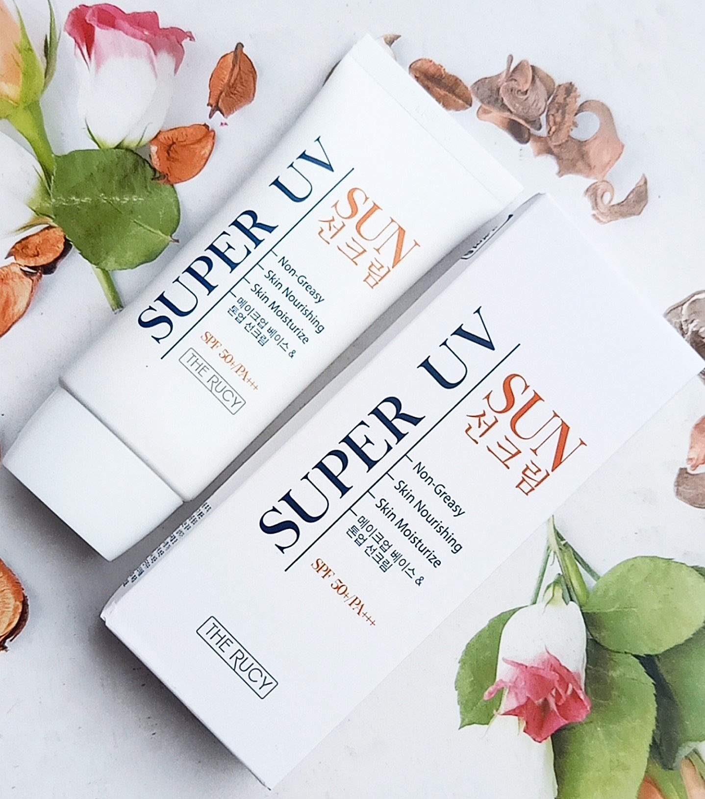- Kem chống nắng siêu bảo vệ, dưỡng da cao cấp Hàn Quốc THE RUCY SUPER UV SUNCREAM SPF 50+/PA+++ 50ML Kem chống nắng vật lý The Rucy SUPER UV SUNCREAM SPF 50+/PA+++ với khả năng siêu chống nắng, tán xạ tia cực tím tốt, không gây kích ứng, dị ứng, có mức độ bảo vệ da cao nhờ tạo lớp màng để bảo vệ làn da khỏi các tia UVA và UVB, ngăn chặn ảnh hưởng của nắng gắt nhưng vẫn giữ cho bề mặt da luôn thông thoáng, không gây bóng nhờn. Kết hợp với dưỡng chất từ các loại thảo dược tự nhiên sẽ nuôi dưỡng làn da trắng hồng, khỏe mạnh từ bên trong và tăng cường giữ ẩm bổ sung, đồng thời có hiệu quả ngay sau khi sử dụng. Để đặt được hiệu quả chống nắng tốt nhất, nên thoa lại kem chống nắng The Rucy sau mỗi 2 đến 3 tiếng 1 lần, khi tiếp xúc với ánh nắng trực tiếp bên ngoài hoặc khi vận động nhiều để bảo vệ làn da tối ưu nhất. Cách sử dụng Thoa một lượng vừa đủ vào xung quanh vùng da mà bạn muốn, xoa đều cho kem thấm vào da. Thể tích: 50ml