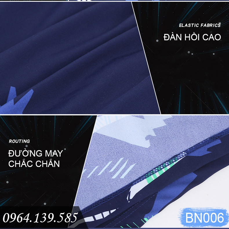 - Mẫu quần bơi nam cao cấp dáng ngắn mới, chống thấm nước, thoáng mát, nhanh khô. - Chất thun bơi lạnh Spandex loại đẹp, co giãn tốt ôm gọn gàng, giúp thoải mái khi