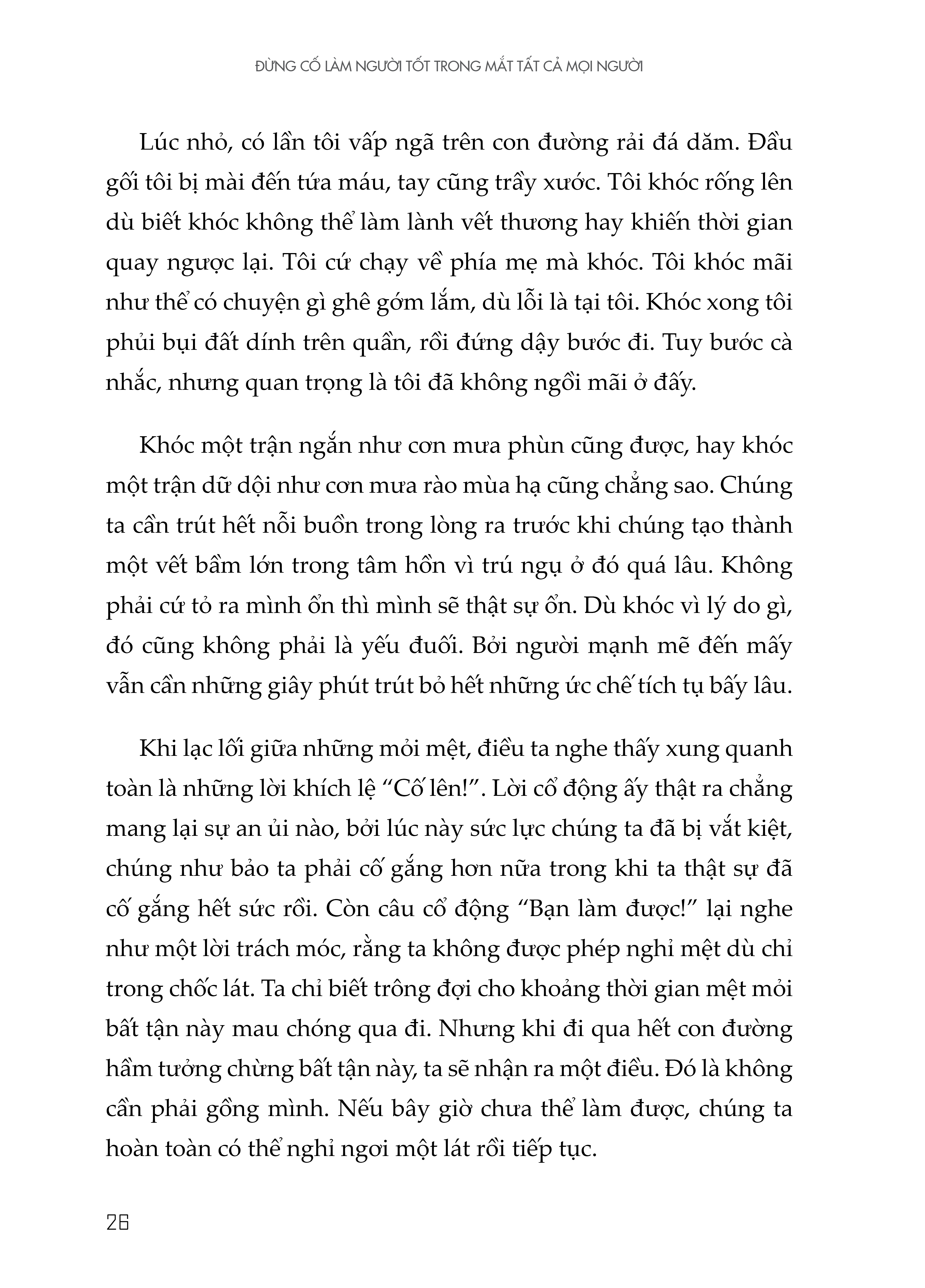 Không Cần Phải Tỏ Ra Hoàn Hảo Đến Thế NỘI DUNG SÁCH: 1. Tích cực nhưng đừng tích cực độc hại! Từ nhỏ chúng ta đã được dạy rằng: cảm nhận tích cực là thứ