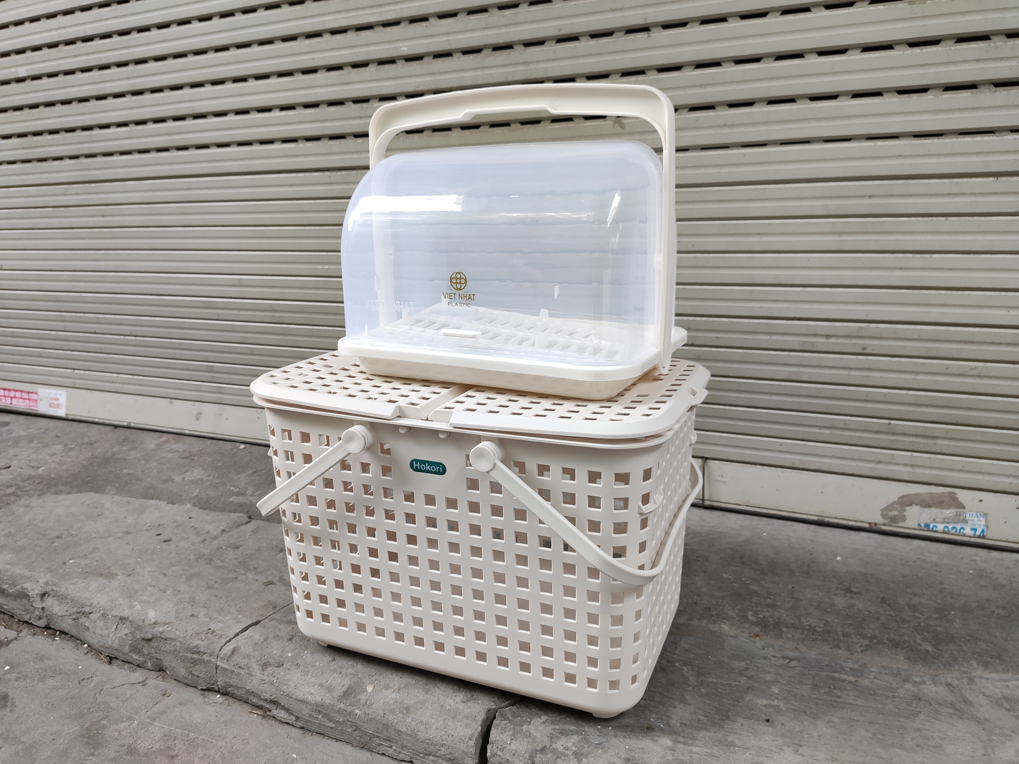 ✨Combo kệ úp bình sữa và Giỏ đựng đồ cho Mẹ đi sinh bằng nhựa cao cấp quai giữa có nắp đậy HOKORI - Nhiều Màu (tặng bộ chổi vệ sinh có nam châm hít từ )