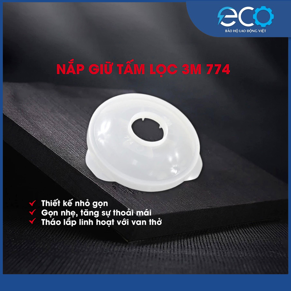 Nắp giữ tấm lọc bụi 3M 774 được thiết kế để lắp vừa vặn dễ dàng và nhanh chóng hơn để giữ tấm lọc bụi 3M 7711, cho dòng mặt nạ phòng độc 3M 3000.