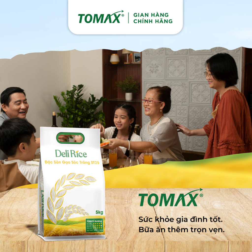 COMBO 2MIX 2 TÚI 5KG GẠO ST25 VÀ ĐÀI THƠM Tomax - TƠI XỐP, DẺO THƠM, THƯỢNG HẠNG - TOMAX Gạo hữu cơ Tomax 100% không có chất bảo quản, không có chất chống mọt, chống nấm, chất tẩy trắng an toàn tuyệt đối cho người sử dụng. Giá trị dinh dưỡng trong mỗi hạt gạo cao vì được phát triển tự nhiên như vitamin B1, B3, B6, sắt, kẽm, Omega 3… tăng cường sức khỏe cho cả gia đình mỗi ngày. Gửi gắm trong những sản phẩm tinh khiết và chất lượng, TOMAX Holding ước mong, mỗi bữa cơm sẽ là nơi gia đình gắn kết thân tình thêm bền chặt và những phút sum vầy luôn trọn vị yêu thương. 05 Lý Do Nên Chọn Gạo Sạch Hữu Cơ Tomax: Cung cấp nguồn dinh dưỡng dồi dào cho cơ thể để duy trì sức khỏe tốt nhất. Tăng cường sức đề kháng, cải thiện hệ miễn dịch và phòng ngừa nhiều loại bệnh như tim mạch, huyết áp, đột quỵ,... Gạo được trồng theo phương pháp 100% hữu cơ nên an toàn cho mọi đối tượng, đặc biệt tốt cho người già, người sức khỏe kém, trẻ nhỏ,.. Gạo hữu cơ có chỉ số đường huyết thấp, giàu chất xơ hỗ trợ giảm cân, chống oxy hóa, bảo vệ sức khỏe toàn diện. Chất lượng sản phẩm được kiểm định kỹ lưỡng, date xa, giá tốt, giao hàng nhanh. THÔNG TIN SẢN PHẨM GẠO ĐẶC SẢN SÓC TRĂNG ST25: Giá trị dinh dưỡng (trong 100g gạo):