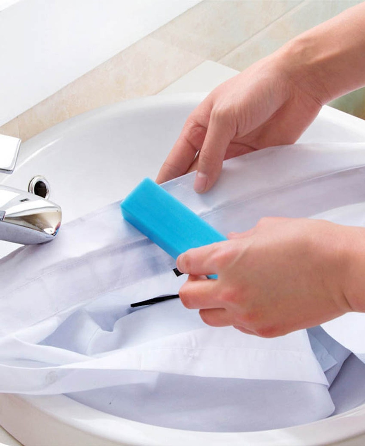 - Chỉ cần thấm ướt quần áo, chà nhẹ sp lên những chỗ có vết bẩn và ngâm, rồi giặt (giặt tay hay giặt máy đều được).