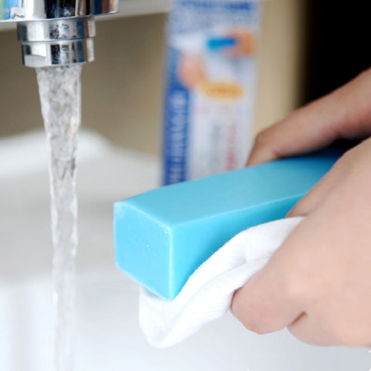 - Giặt tay: 5L nước, dùng 12 ml nước tẩy. 1L nước, dùng 10 ml nước tẩy. Chú ý khi sử dụng: Không sử dụng với nước nóng. Sau khi sử dụng, rửa tay bằng xà phòng. Nên sử dụng găng tay nếu tiếp xúc trong thời gian dài. Không sử dụng với lụa, chất pha nilon, vải polyurethane, acetate. Thanh Xà phòng Giặt Cổ Áo, Tay Áo 100g Xuất xứ: Nhật Bản/ Made in Japan Trọng lượng: 100g Công dụng: Sản phẩm giúp dễ dàng loại bỏ các vết bẩn hiệu quả, đặc biệt là vùng cánh tay và cổ áo… Chỉ cần thấm ướt quần áo, chà nhẹ sản phẩm lên những chỗ có vết bẩn và ngâm, rồi giặt (giặt tay hay giặt máy đều được). Thanh tẩy vết bẩn nhật giúp bạn dễ dàng loại bỏ các vết bẩn nơi cổ áo và cổ tay áo một cách hiệu quả, đặc biệt là vùng cánh tay và cổ á Giữ cho áo quần luôn sạch sẽ. Giặt sạch hiệu quả các vết bùn, dầu khoáng, cafe, nước tương, vết máu, trên vải sợ Hướng dẫn sử dụng: