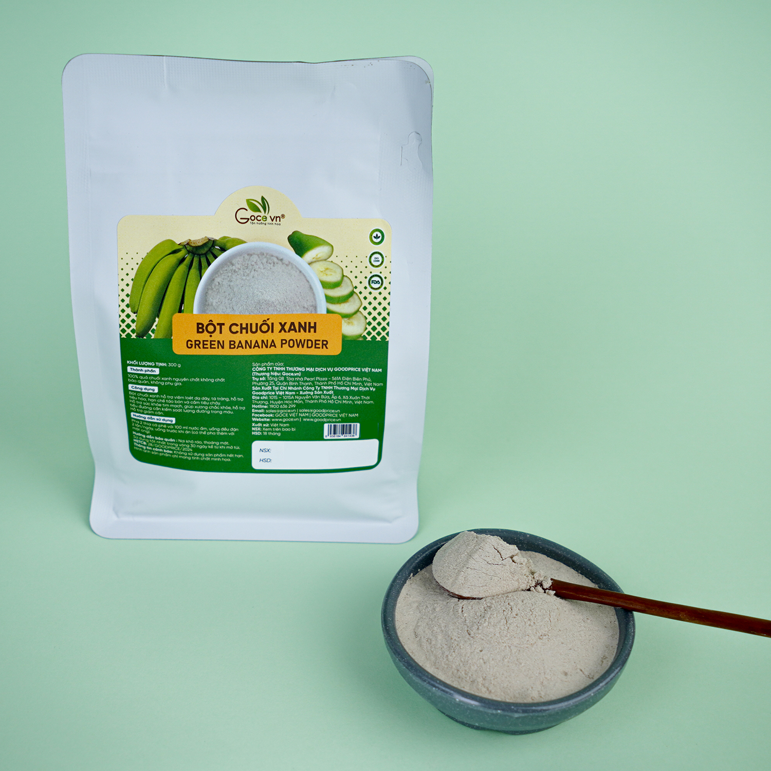 - Có thể thêm đường nếu muốn Bột Chuối Xanh Goce