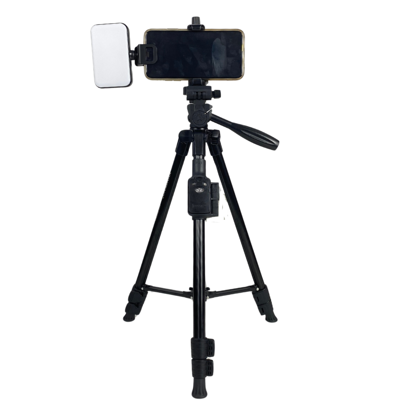Tripod dễ sử dụng, chỉ cần mở các khớp ở chân để tăng hoặc giảm chiều cao theo ý thích. Kèm theo remote từ xa, chỉ cần kết nối bluetooth là có thể sử dụng.