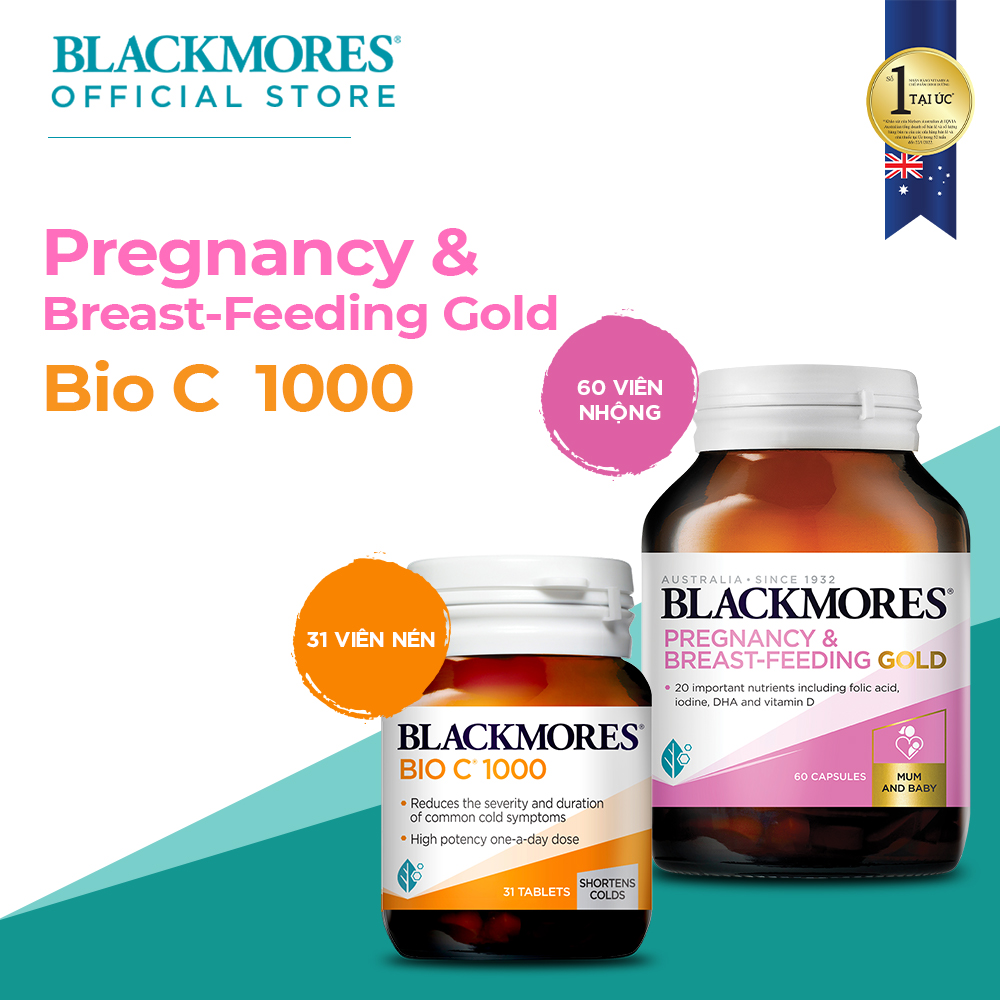 ✨Combo Vitamin Tổng Hợp Cho Bà Bầu và Mẹ Cho Con Bú Blackmores Pregnancy & Breast-Feeding Gold Lọ 60 Viên và Viên Uống Bổ Sung Vitamin C Blackmores Bio C 1000mg Lọ 31 Viên